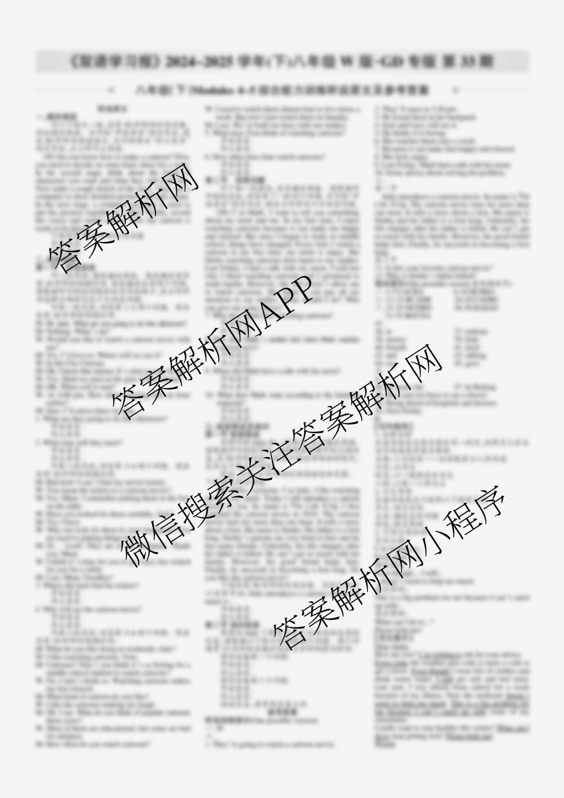 2024-2025学年下学期 双语学习报 八年级 W版·GD专版第33期答案,目前学英语报答案已经汇总了2024-2025学年下学期 双语学习报 八年级 W版·GD专版第33期答案的各科答案和试卷,获取更多学生双语报答案解析,请在关注本站。