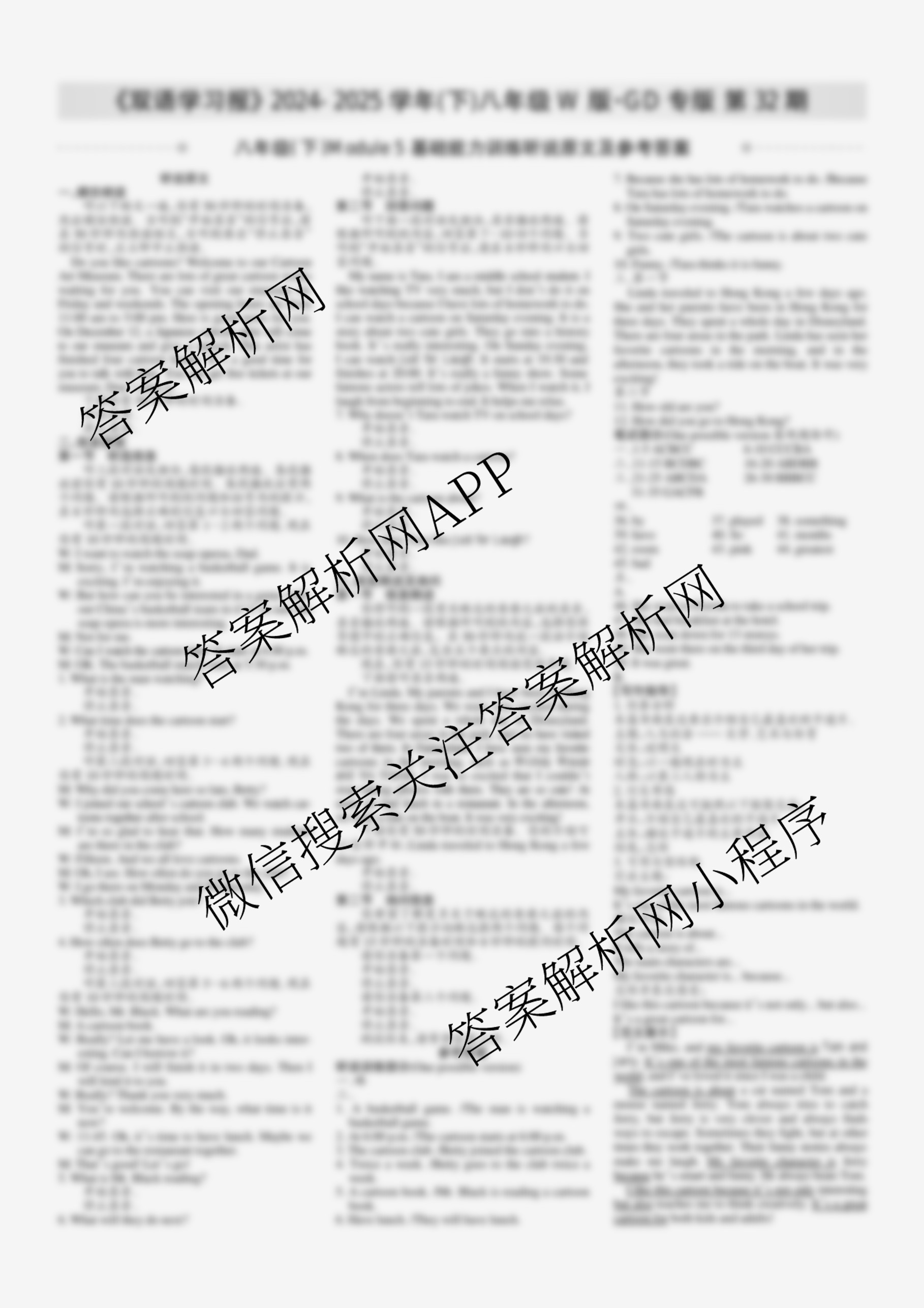 2024-2025学年下学期 双语学习报 八年级 W版·GD专版第32期答案,目前学英语报答案已经汇总了2024-2025学年下学期 双语学习报 八年级 W版·GD专版第32期答案的各科答案和试卷,获取更多学生双语报答案解析,请在关注本站。