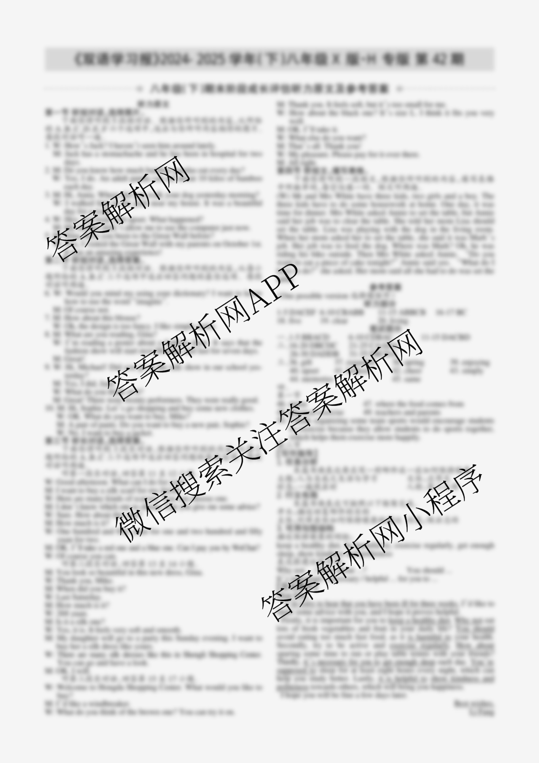 2024-2025学年下学期 双语学习报 八年级 X版H专版第42期答案