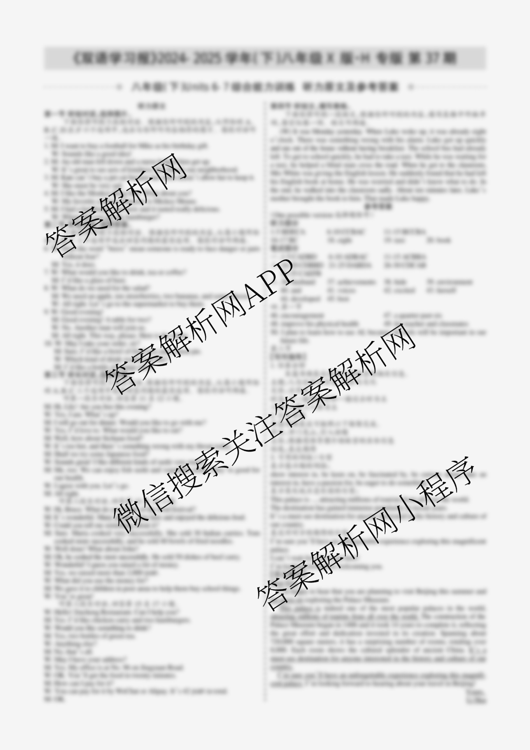 2024-2025学年下学期 双语学习报 八年级 X版·H专版第37期答案,目前学英语报答案已经汇总了2024-2025学年下学期 双语学习报 八年级 X版·H专版第37期答案的各科答案和试卷,获取更多学生双语报答案解析,请在关注本站。