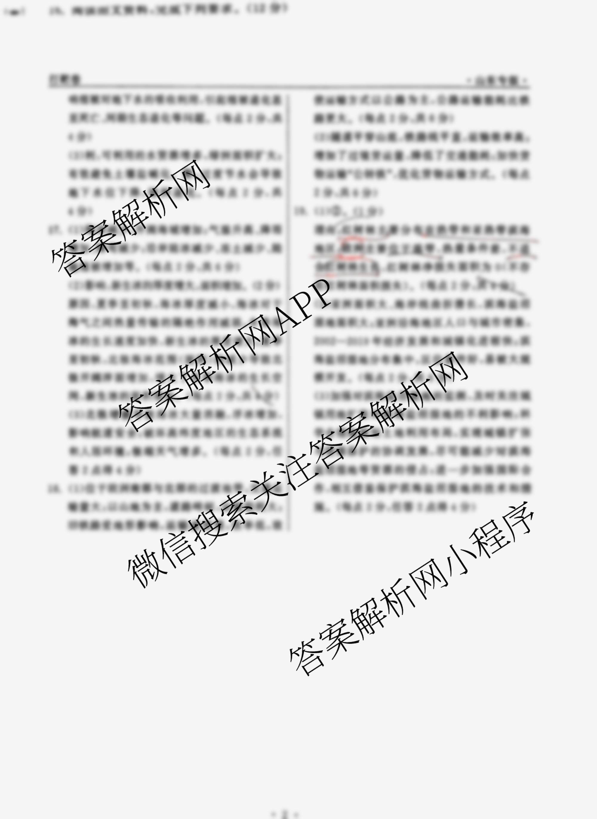 - [高三]轮轮清·打靶卷·2025年山东省普通高中学业水平等级考试模拟试题(三)3地理(山东)答案