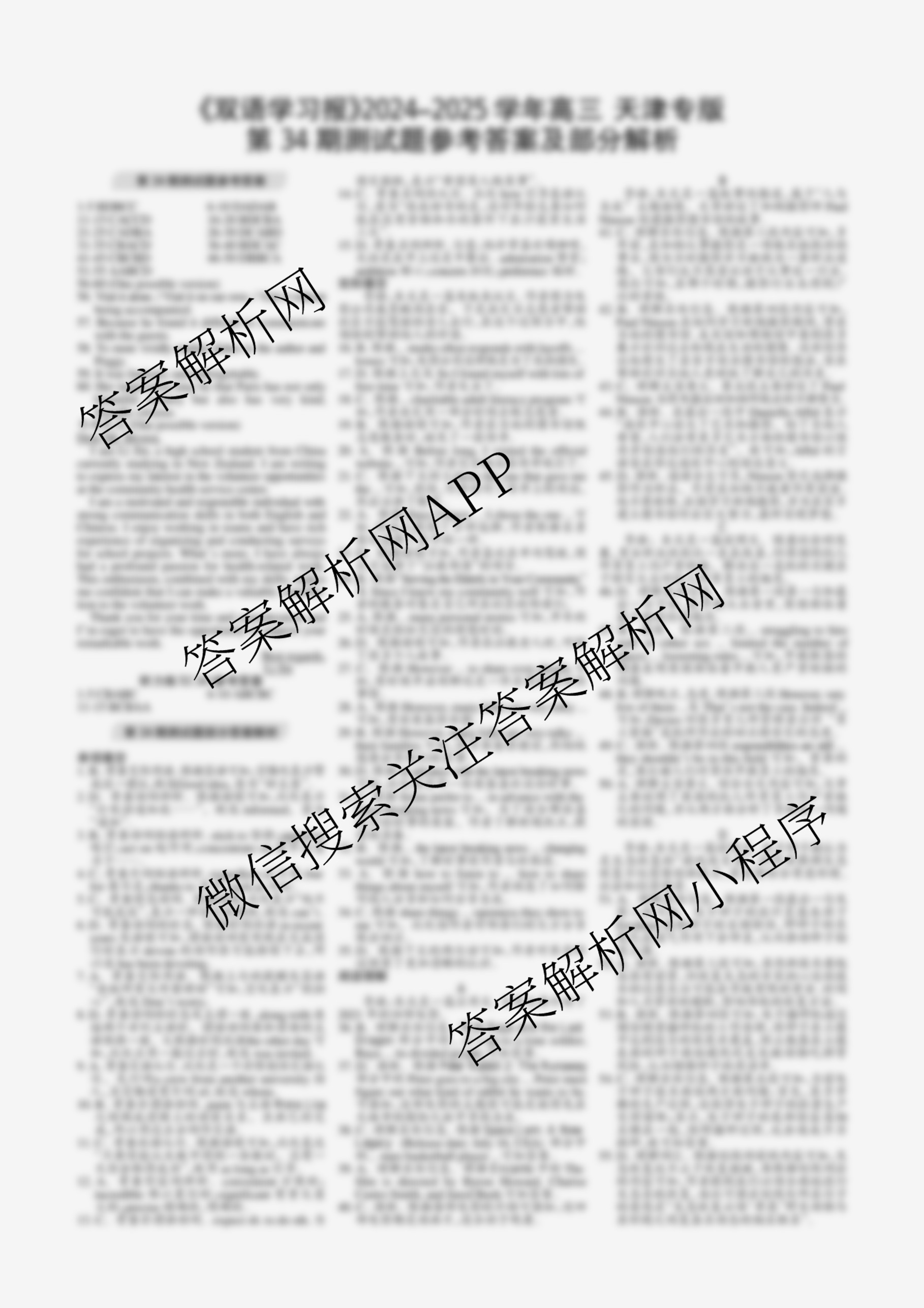 2024-2025学年下学期 双语学习报 高三 天津专版第34期答案