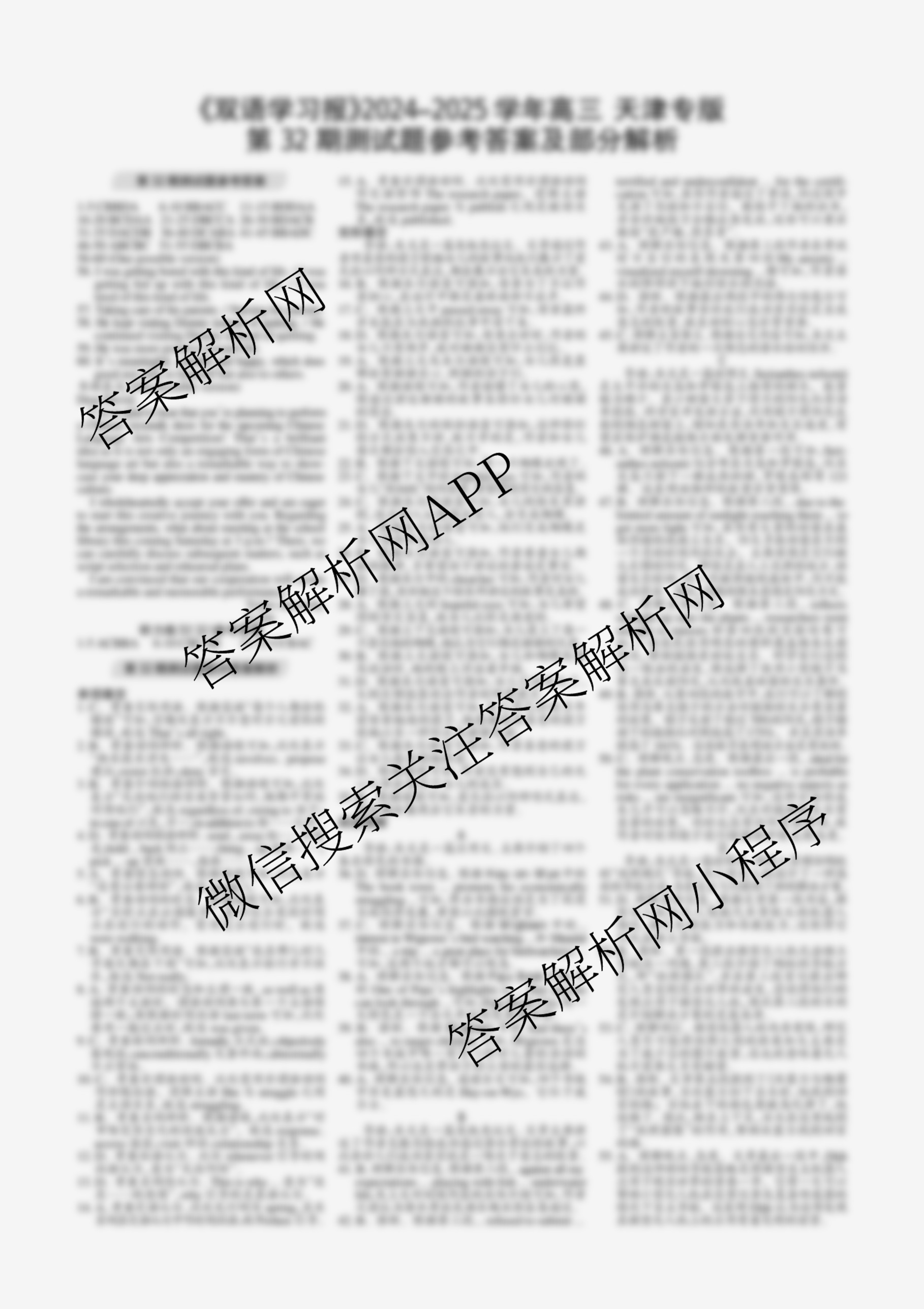 2024-2025学年下学期 双语学习报 高三 天津专版第32期答案