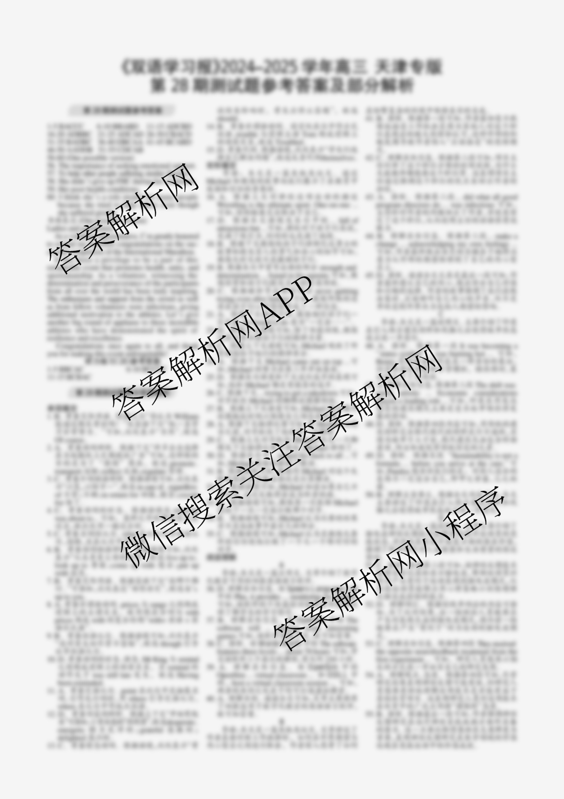 2024-2025学年下学期 双语学习报 高三 天津专版第28期答案