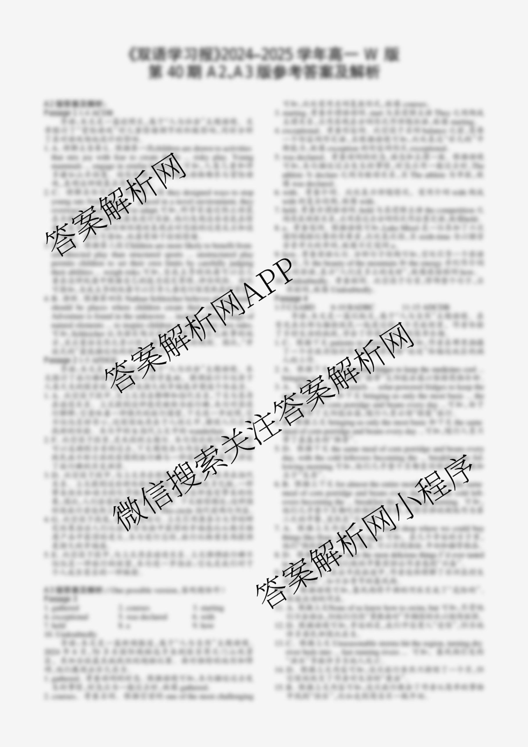2024-2025学年下学期 双语学习报 高一 W版广东专版第40期答案