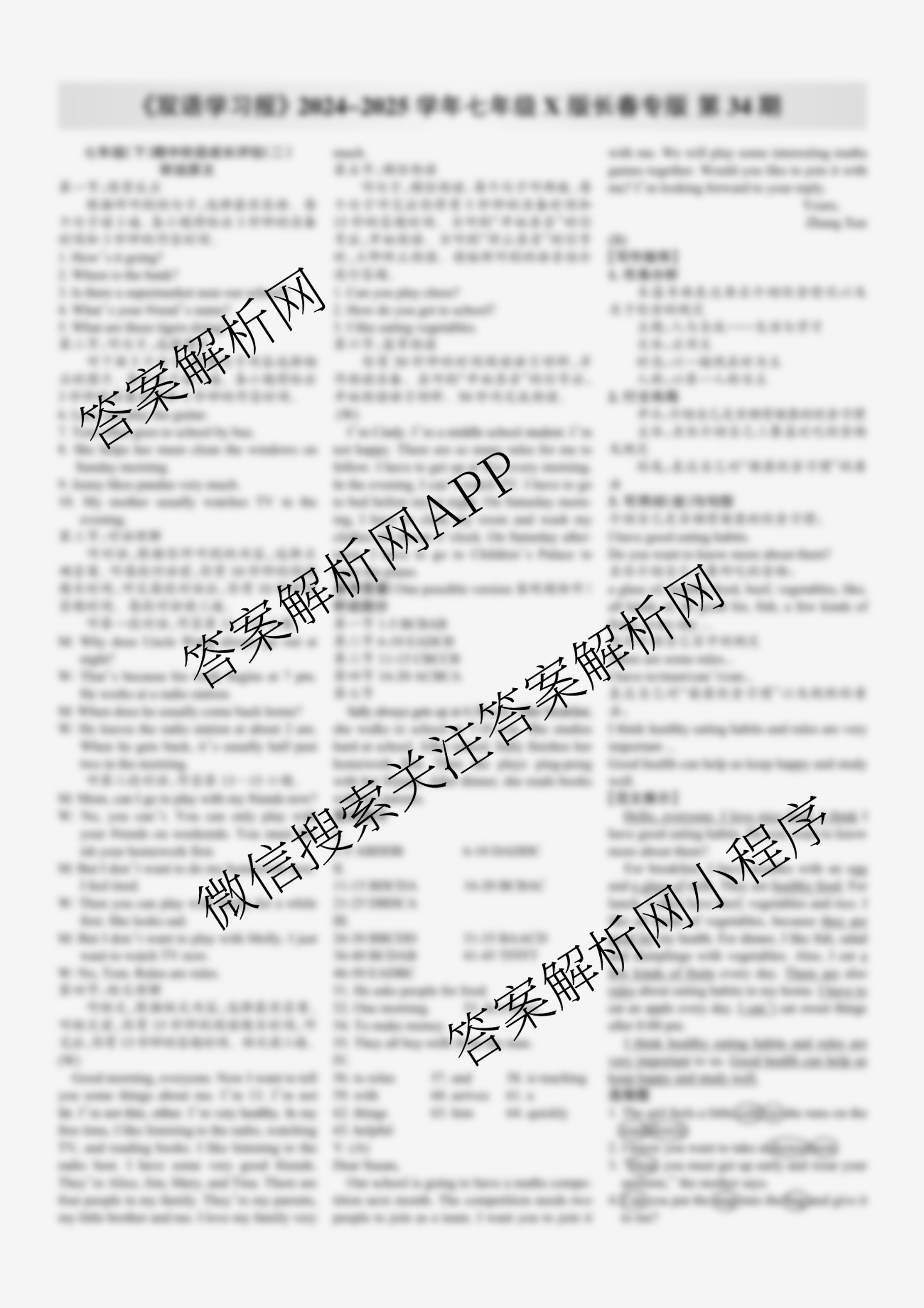 2024-2025学年下学期 双语学习报 七年级 X版长春专版第34期答案