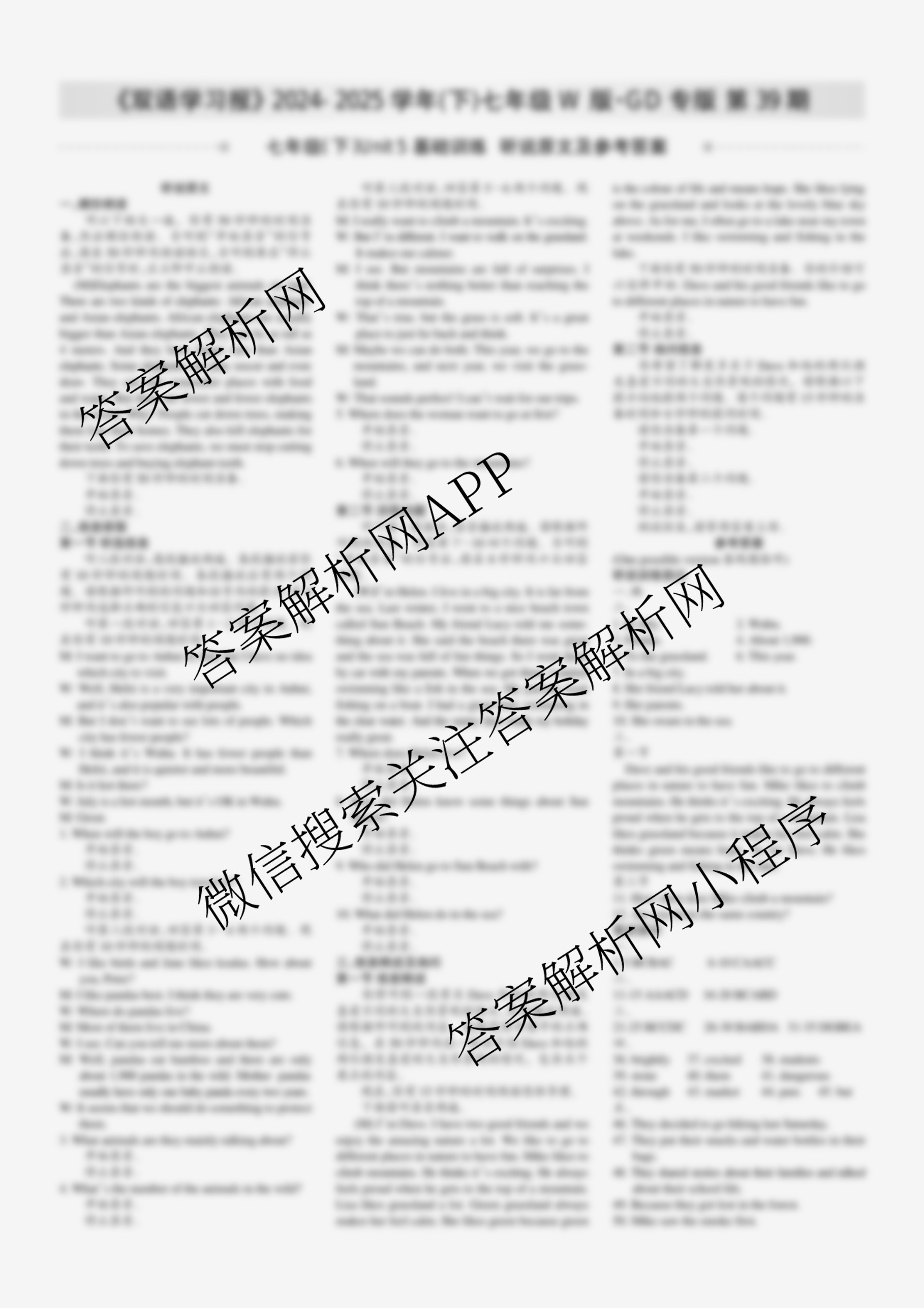 2024-2025学年下学期 双语学习报 七年级 W版GD专版第39期答案
