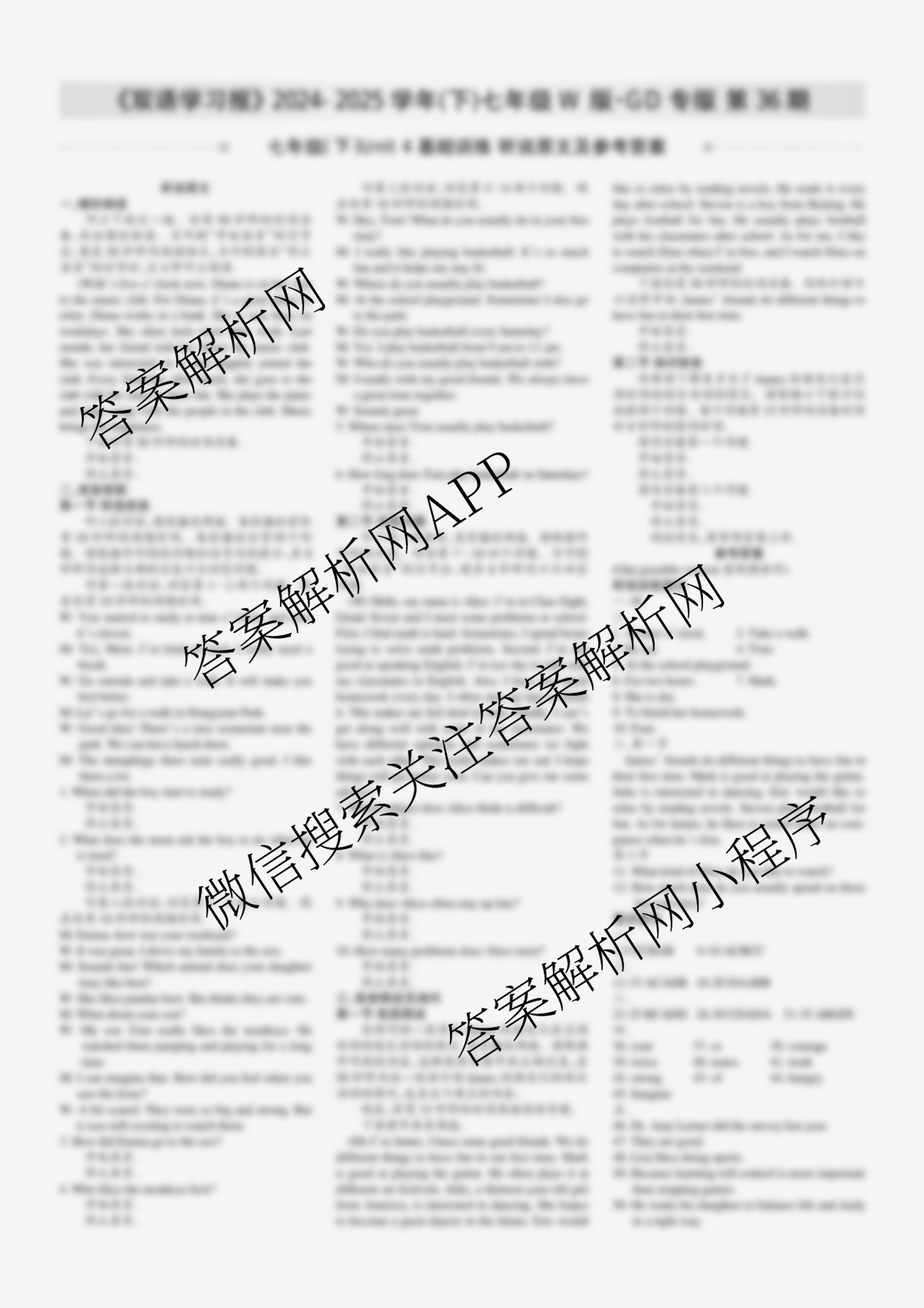 2024-2025学年下学期 双语学习报 七年级 W版GD专版第36期答案