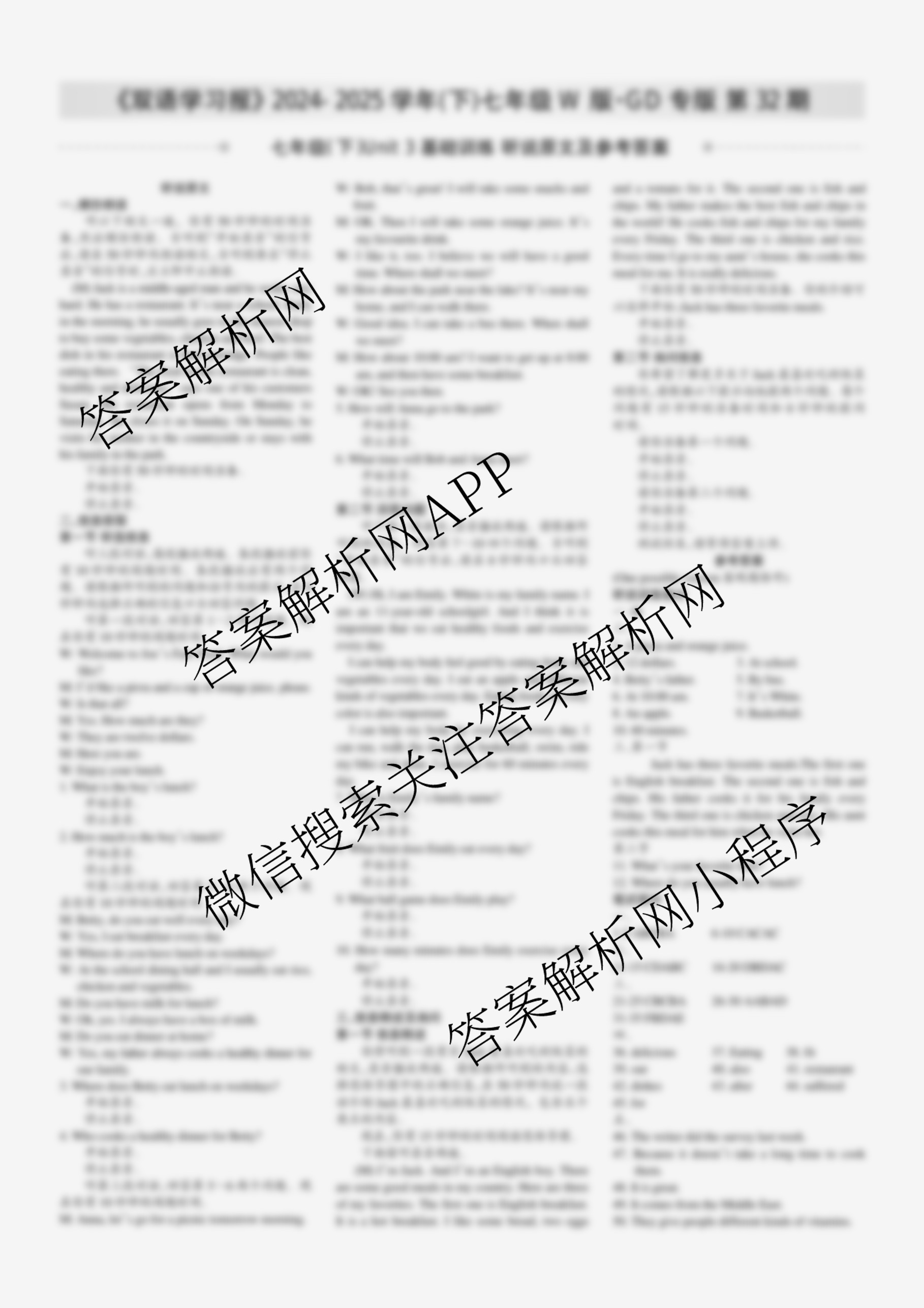 2024-2025学年下学期 双语学习报 七年级 W版GD专版第32期答案