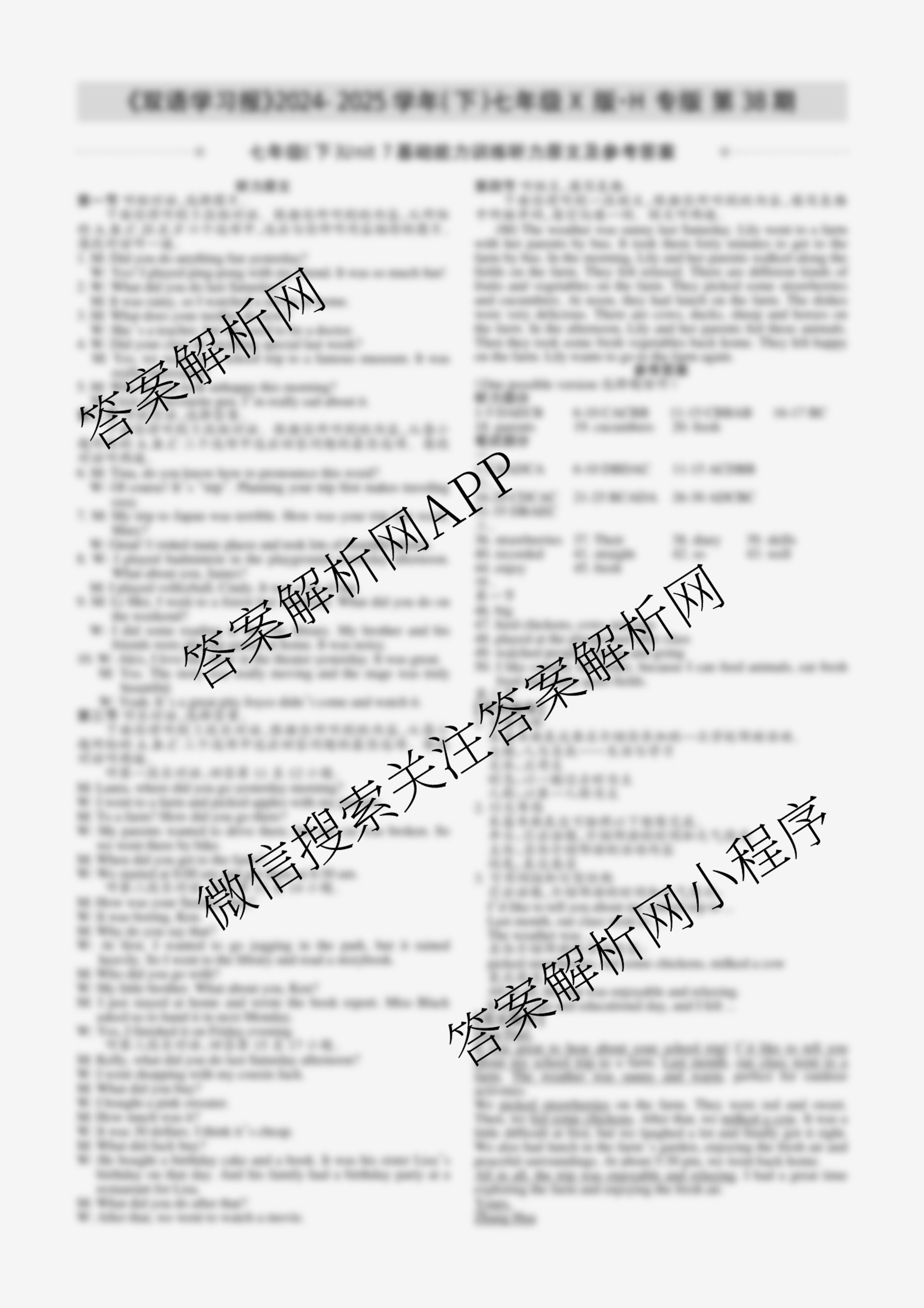 2024-2025学年下学期 双语学习报 七年级 X版H专版第38期答案