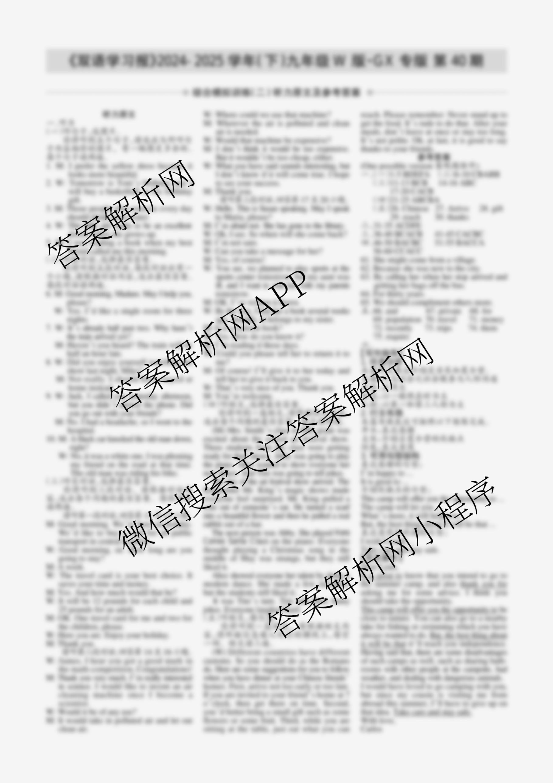 2024-2025学年下学期 双语学习报 九年级 W版·GX专版第40期答案,目前学英语报答案已经汇总了2024-2025学年下学期 双语学习报 九年级 W版·GX专版第40期答案的各科答案和试卷,获取更多学生双语报答案解析,请在关注本站。