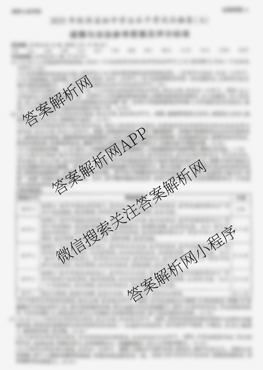 - [九年级](益卷)2025年陕西省初中学业水平考试压轴卷(A)[试卷类型A]生物答案