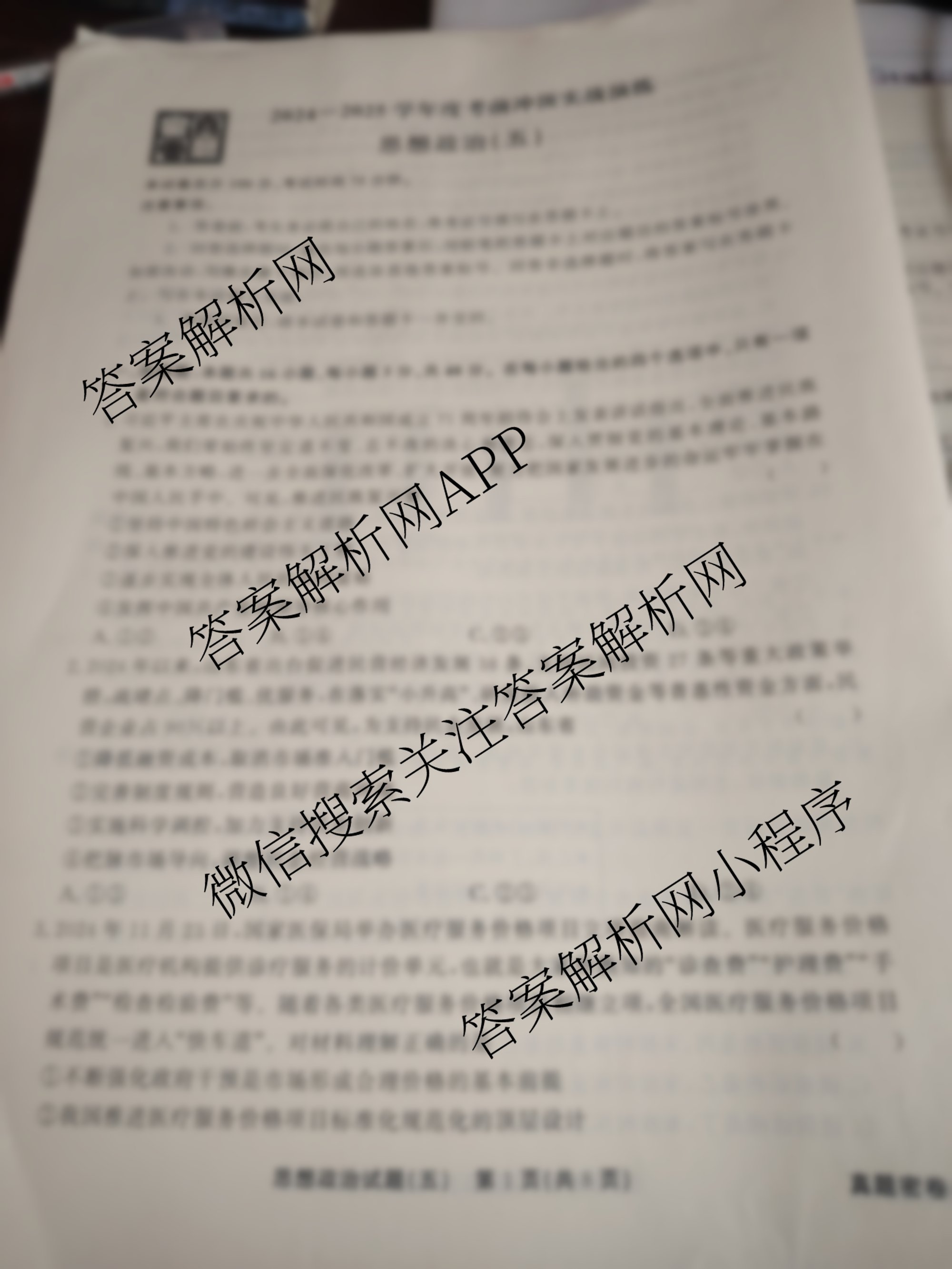 真题密卷2024-2025学年度考前冲顶实战演练(五)5政治(1)试题
