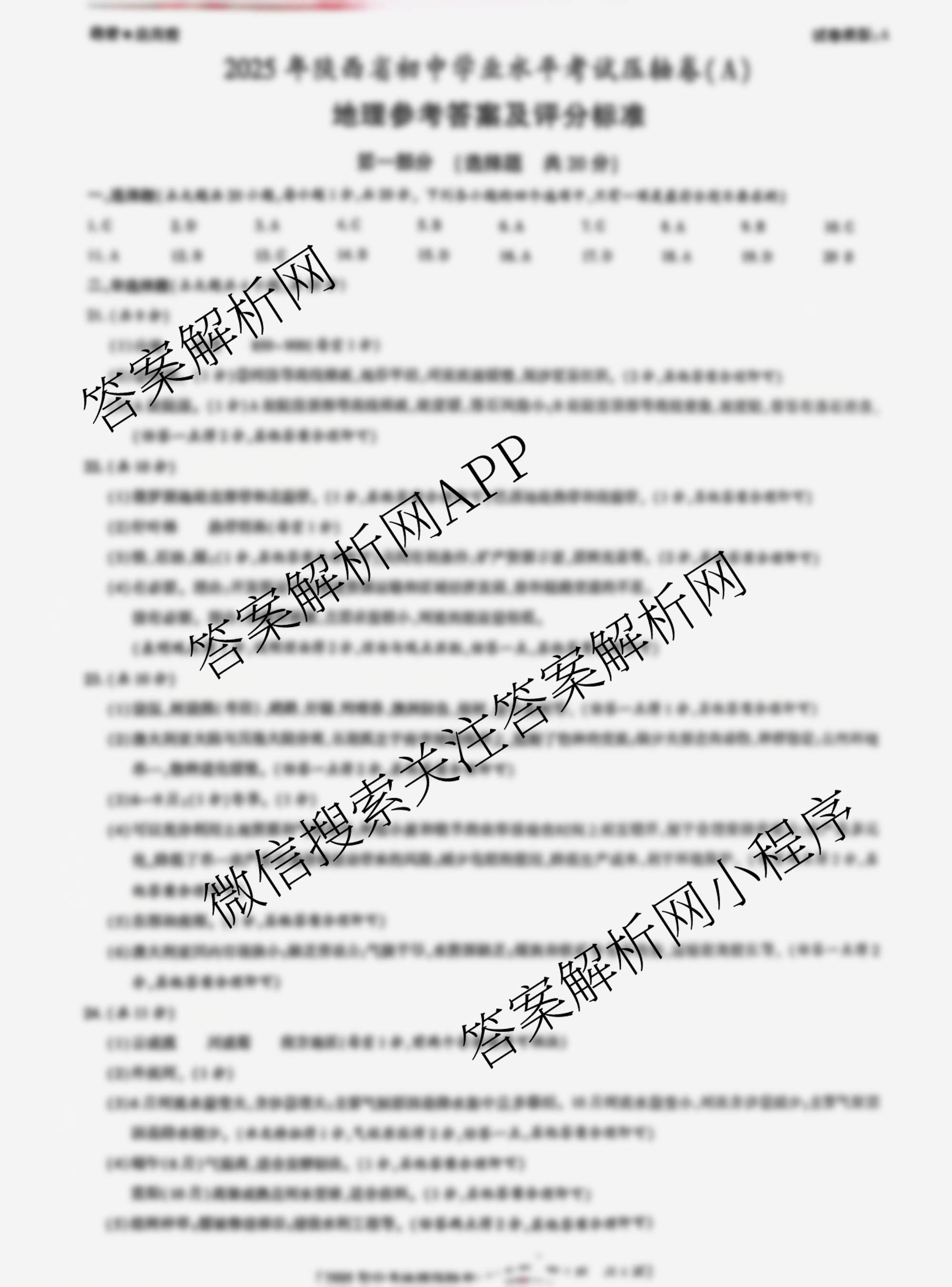 - [益卷]2025年陕西省初中学业水平考试压轴卷(A)[试卷类型A]地理答案
