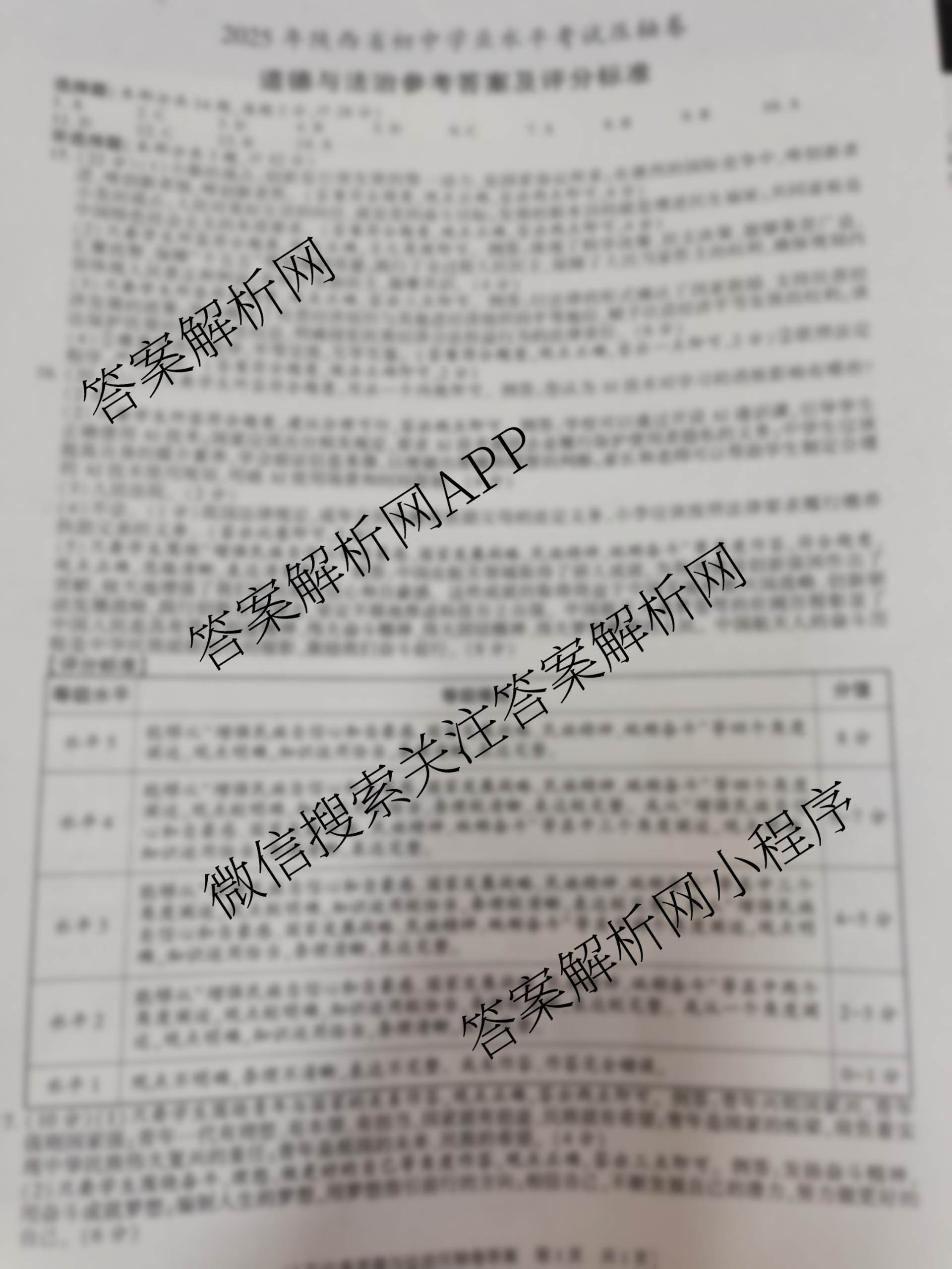 - 九年级(益卷)2025年陕西省初中学业水平考试压轴卷[试卷类型A]道德与法治答案