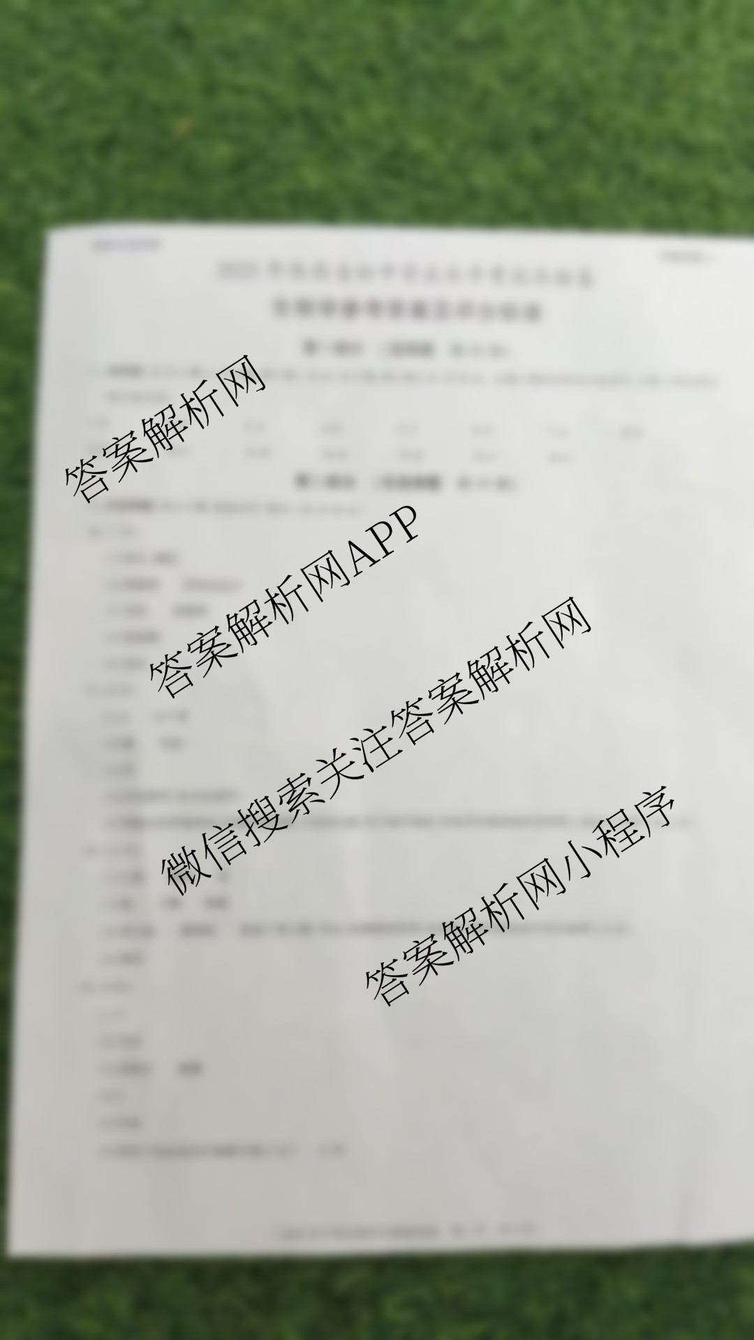 - (九年级)益卷2025年陕西省初中学业水平考试压轴卷[试卷类型A]生物答案