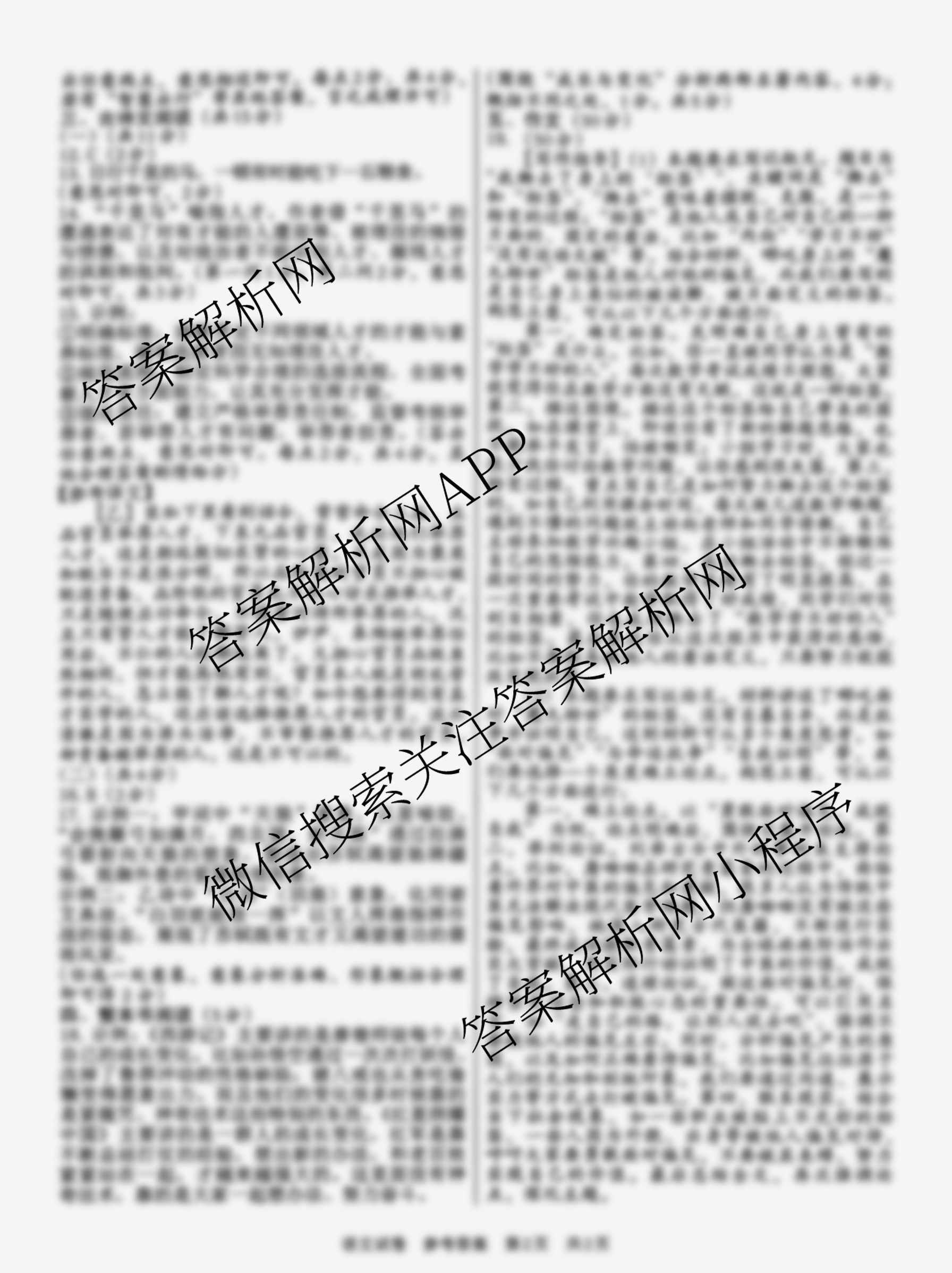 - 九年级2025年[文博志鸿]河北省中招联考模拟卷语文答案