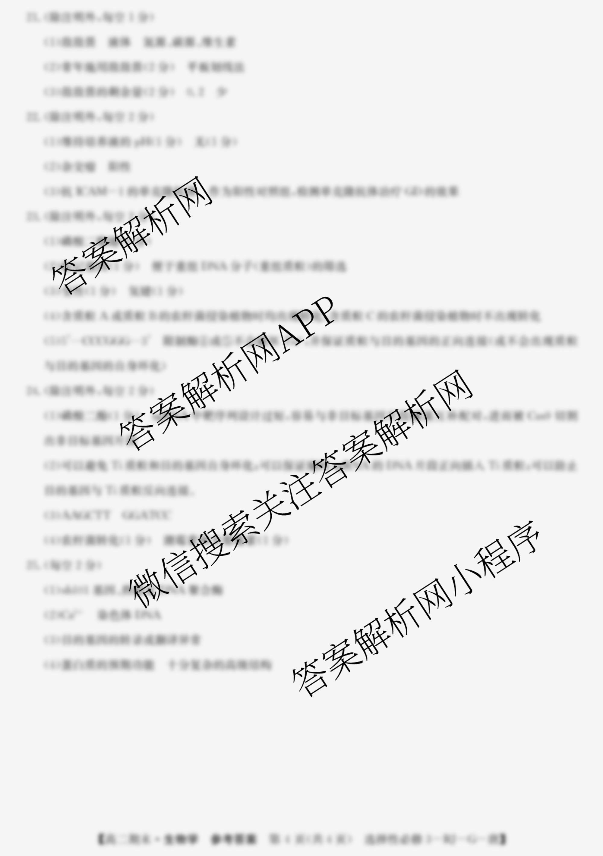 - 2024~2025全国名校(高二)第二学期期末考试试卷生物(选择性必修3-RJ-G-唐)答案