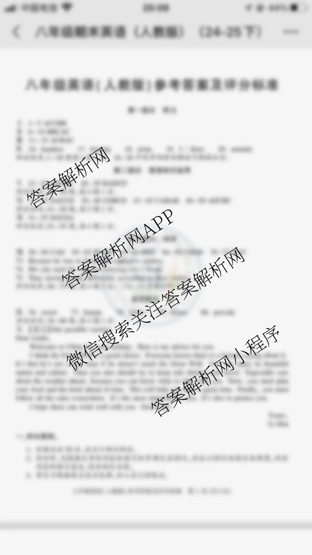 - (八年级)安徽省2024-2025学年下学期期末教学质量调研(无标题)英语(人教版)答案