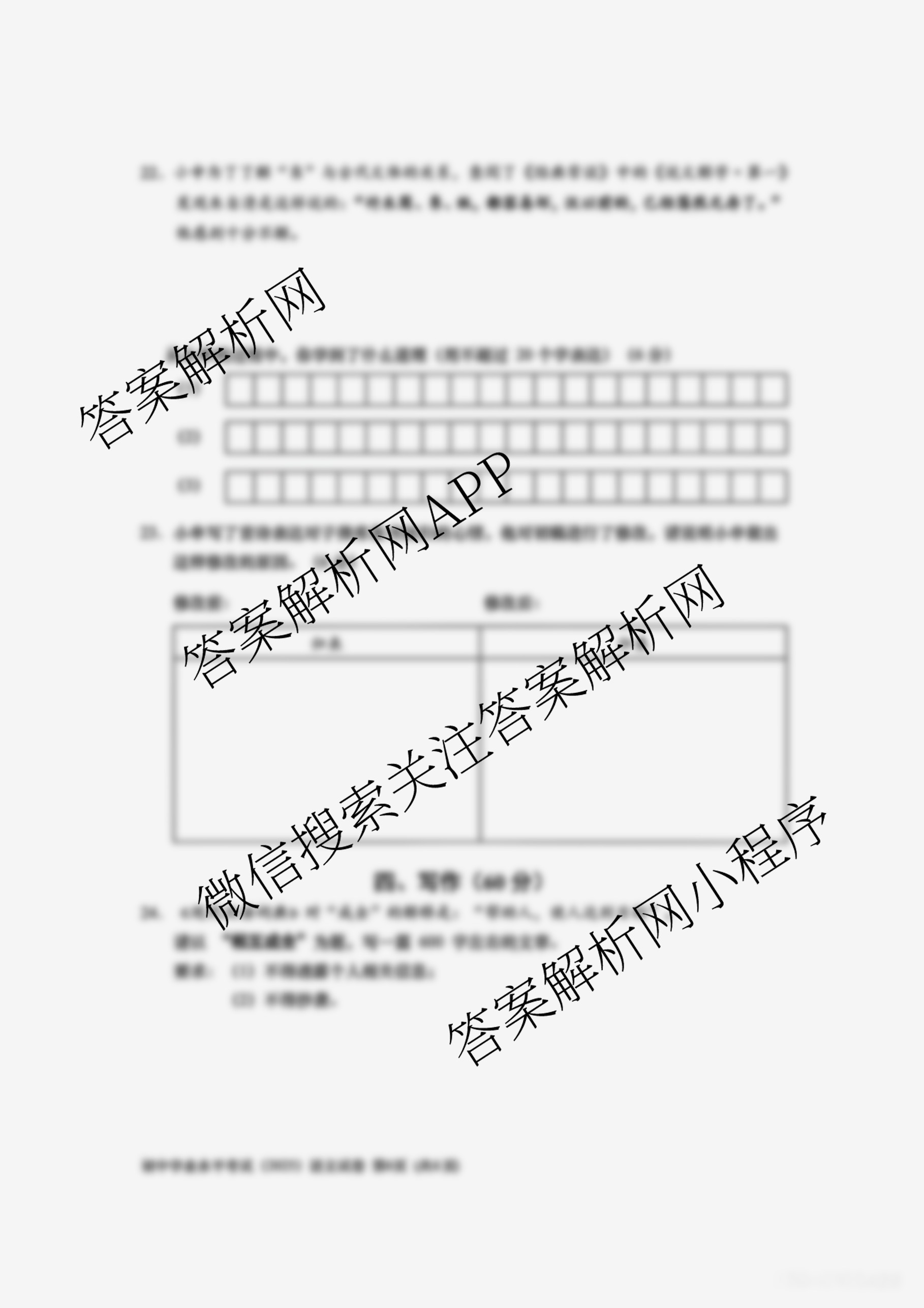 - [九年级]2025年上海市初中学业水平考试语文答案