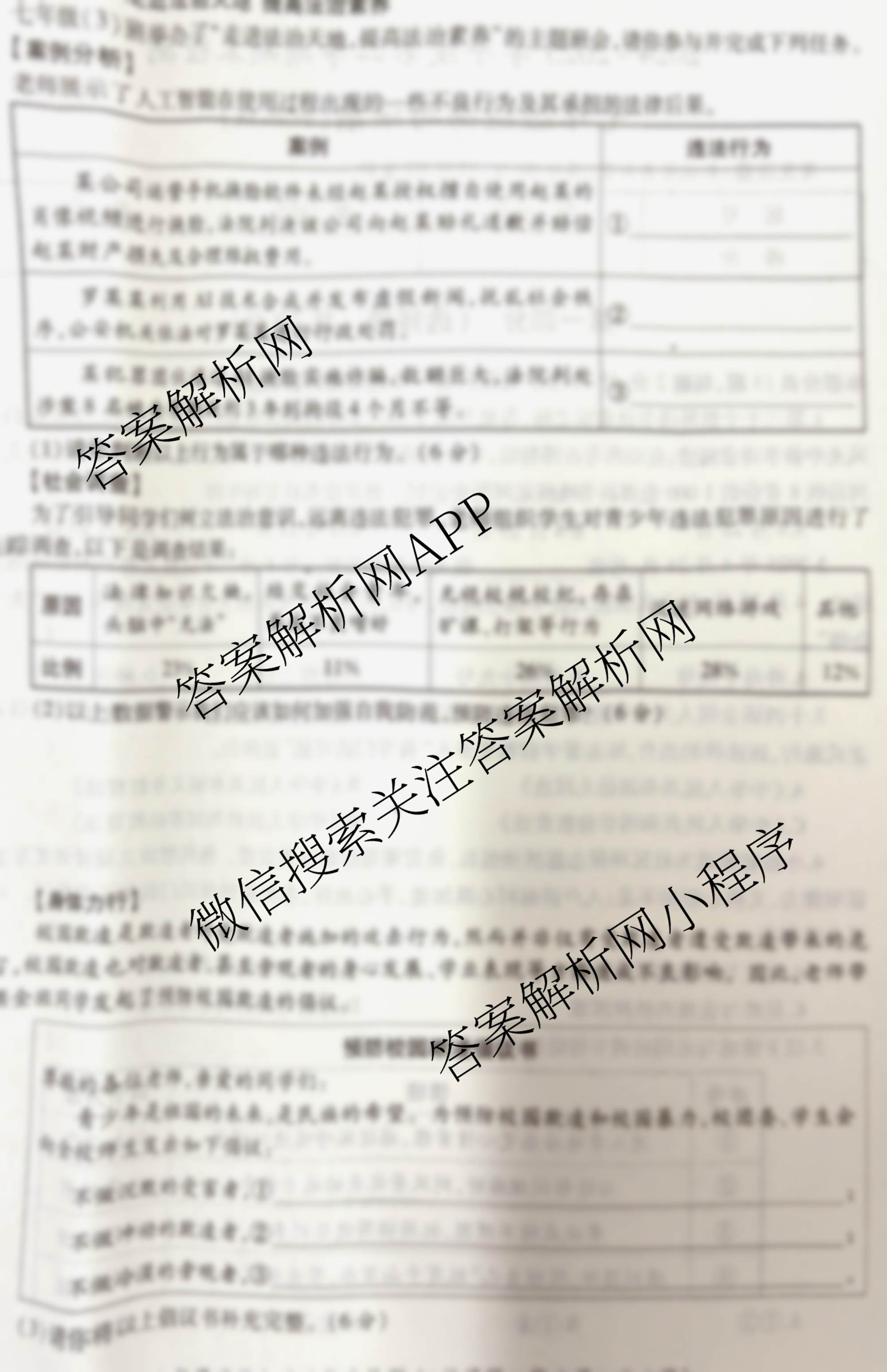 - [七年级](益卷)·陕西省2024-2025学年度第二学期期末检测道德与法治(统编版)答案