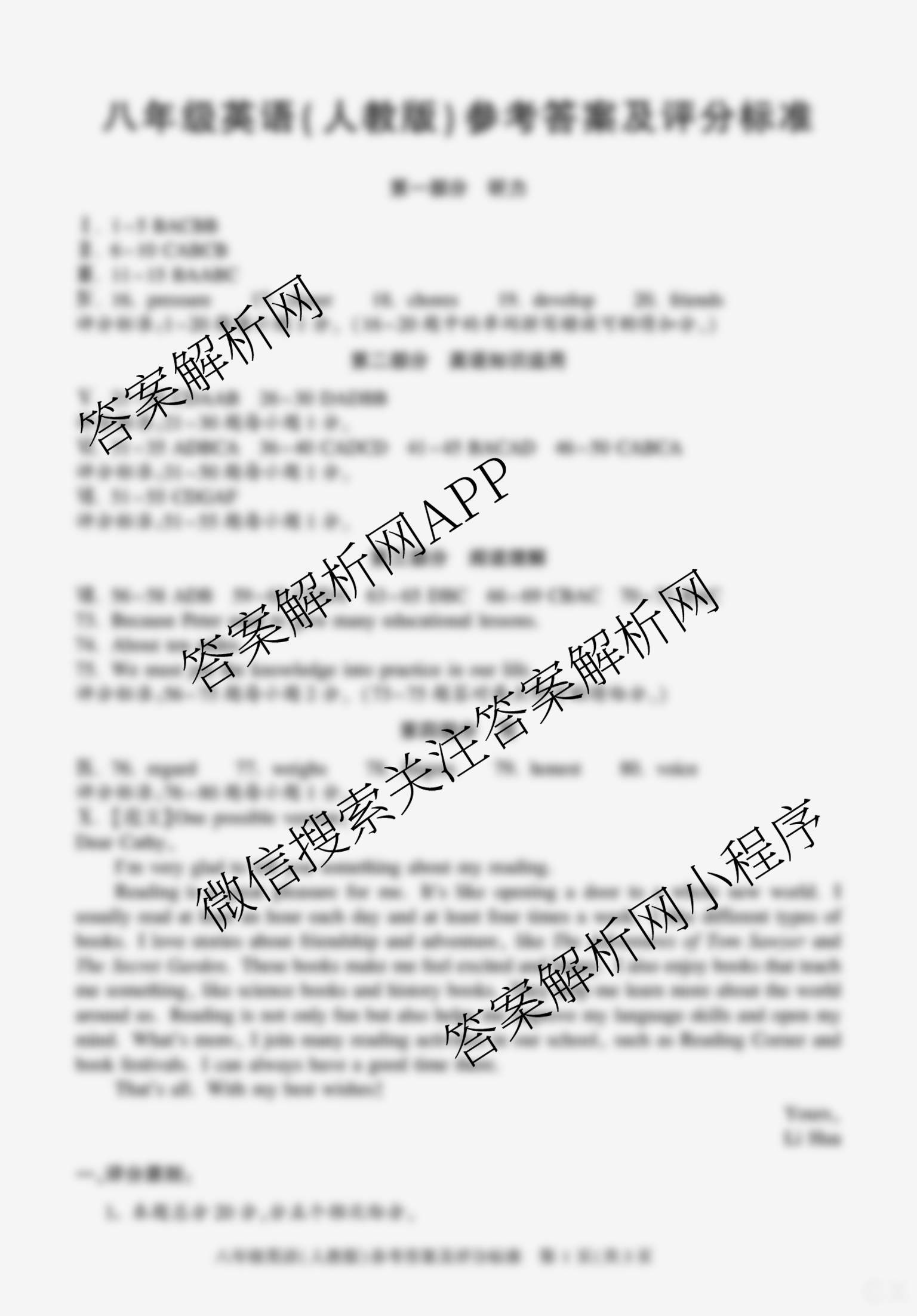 安徽省2024-2025学年八年级下学期期末教学质量调研(无标题)DD英语(人教版)答案,目前学英语报答案已经汇总了安徽省2024-2025学年八年级下学期期末教学质量调研(无标题)DD英语(人教版)答案的各科答案和试卷,获取更多安徽省教学质量调研答案解析,请在关注本站。
