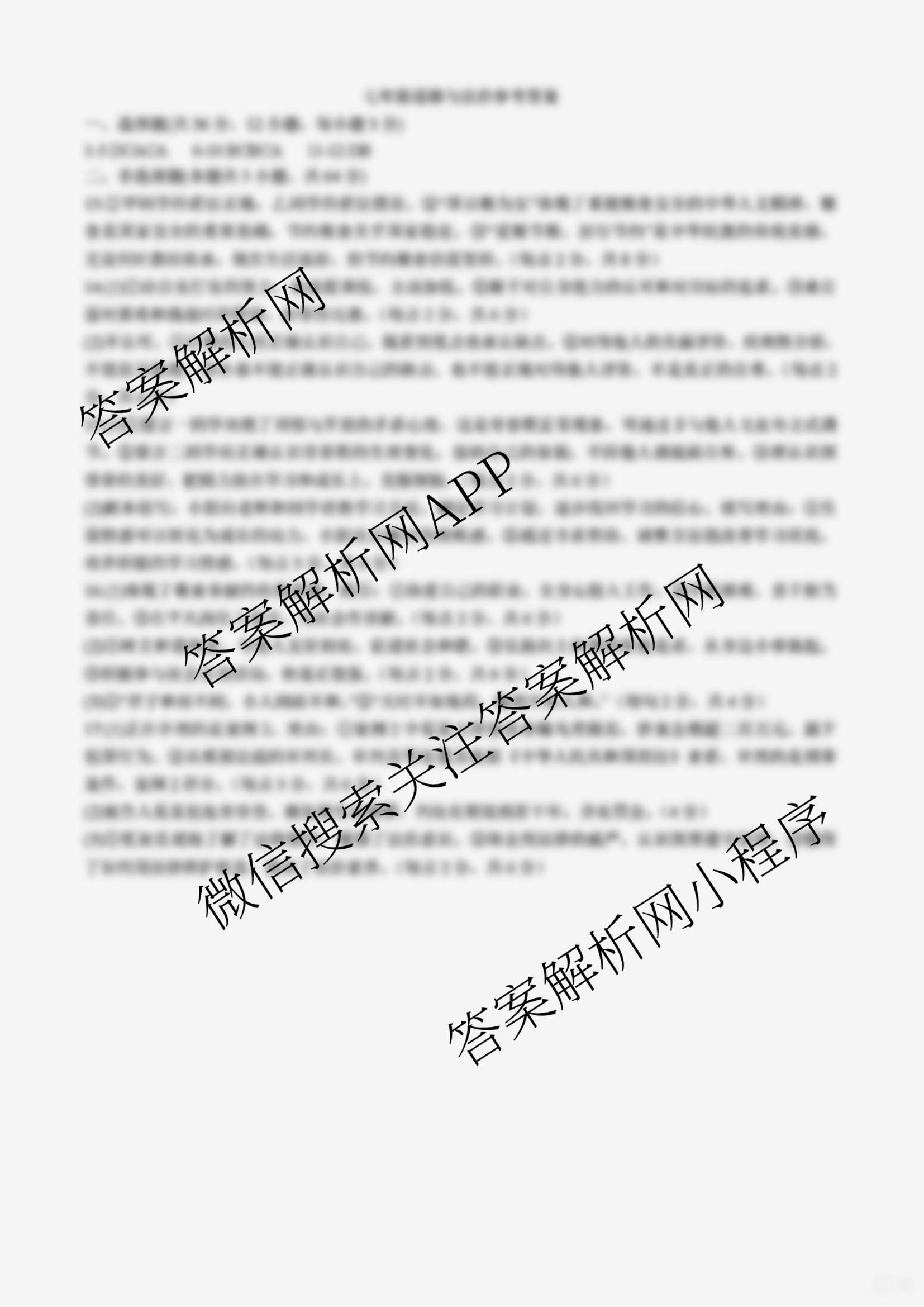 - 2024-2025安徽省学年[七年级]下学期期末教学质量调研(无标题)DD道德与法治答案