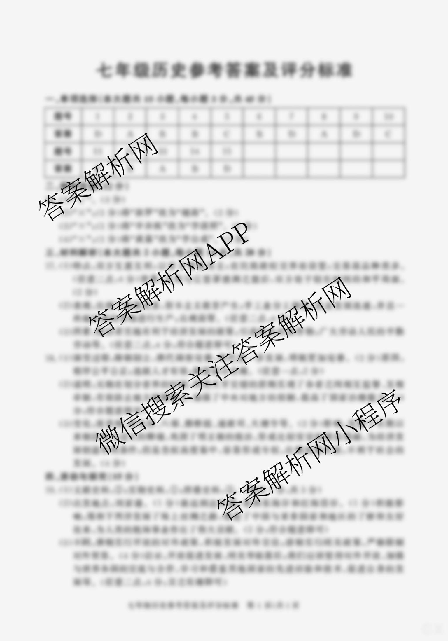 - [七年级]安徽省2024-2025学年下学期期末教学质量调研(无标题)DD历史答案