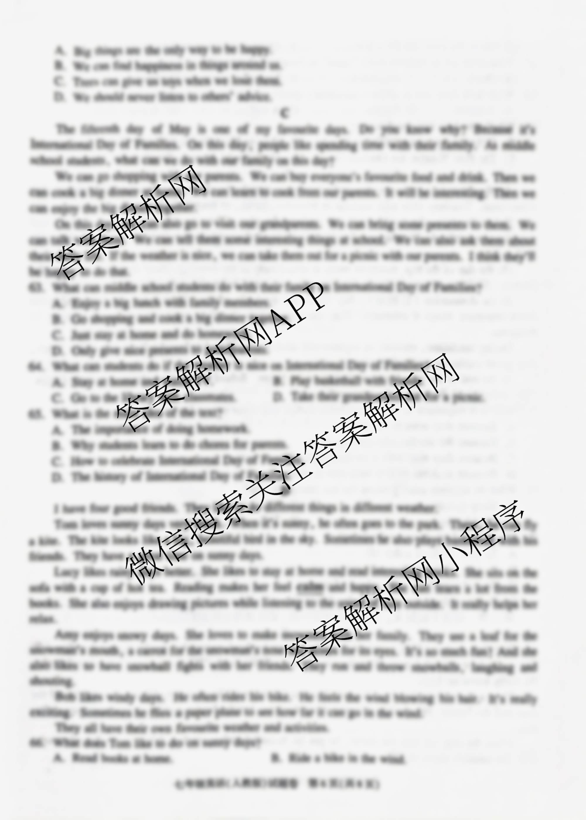- 2024-2025(七年级)安徽省学年下学期期末教学质量调研(无标题)DD英语(人教版)答案