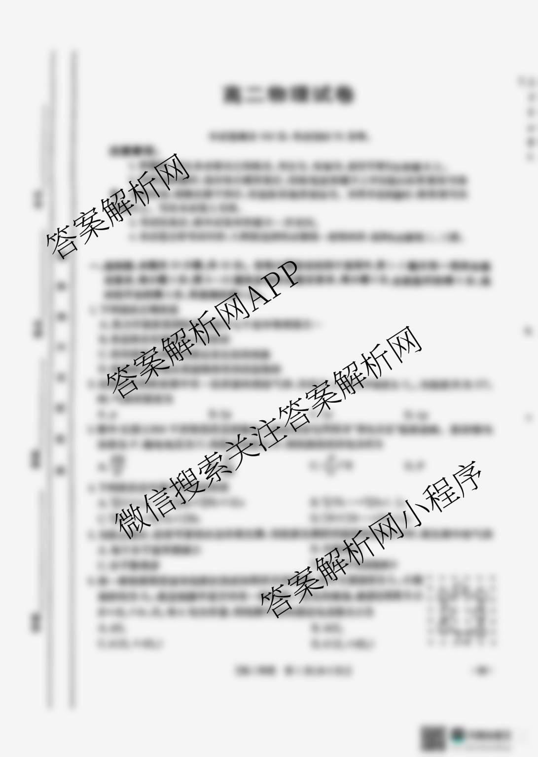 - [高二]江西省2024~2025学年6月联考(6.29)物理(B1)试题
