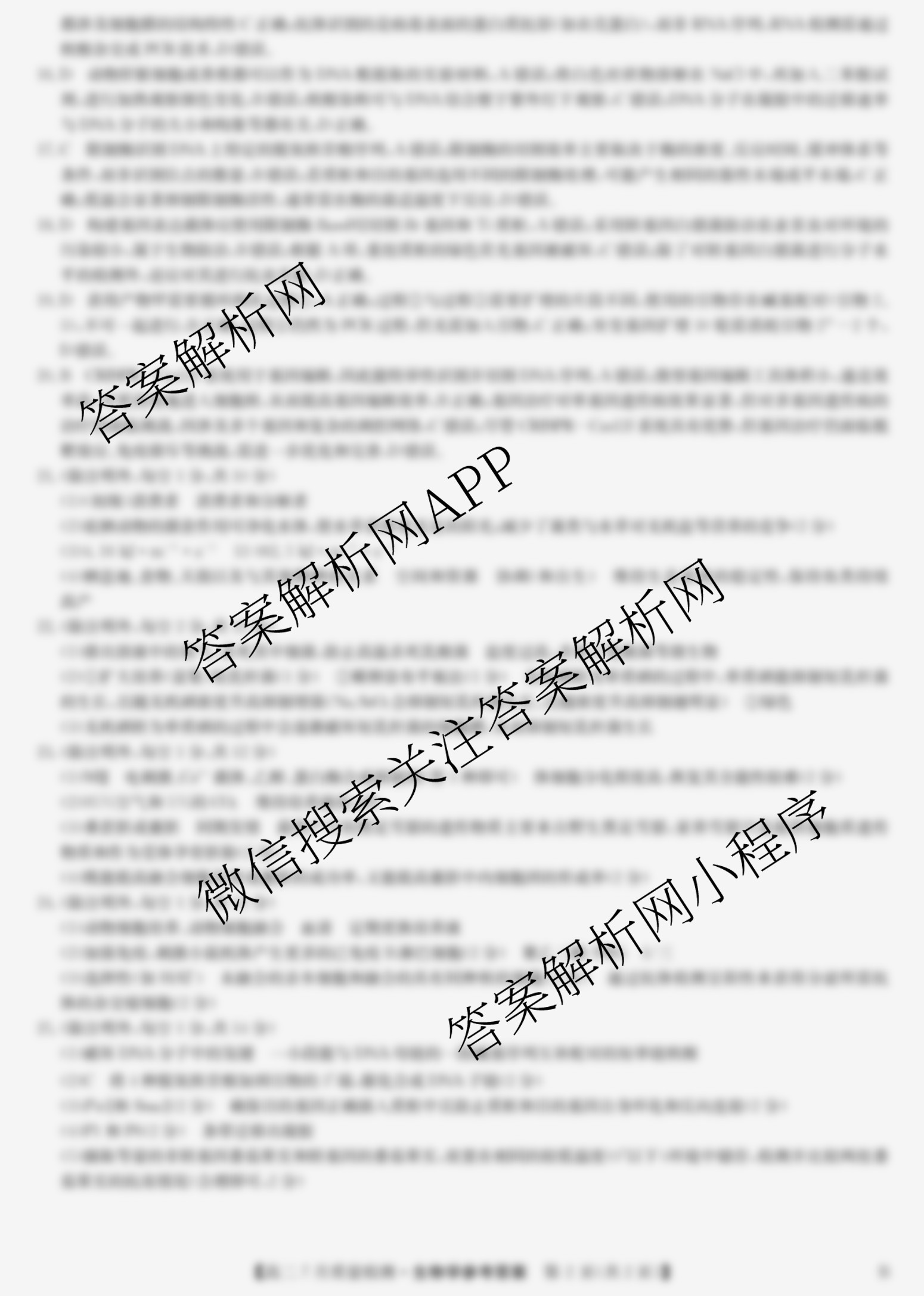 - 高二(九师联盟)2024~2025学年7月质量检测生物(B)答案