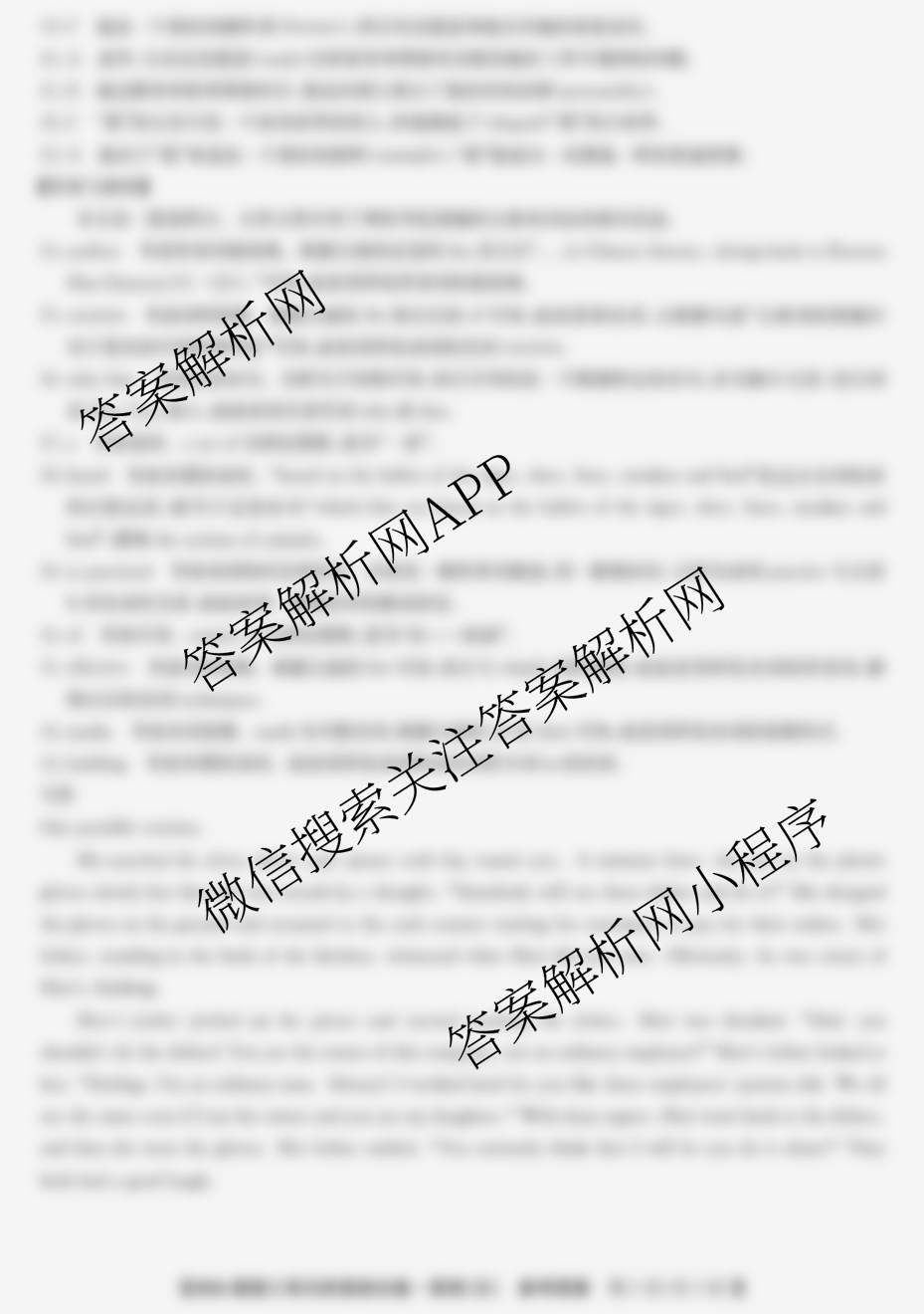九师联盟2026届高三单元阶段综合卷英语(五)答案