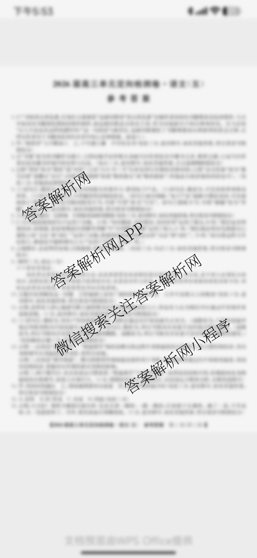 九师联盟2026届高三单元定向检测卷(五)5语文答案