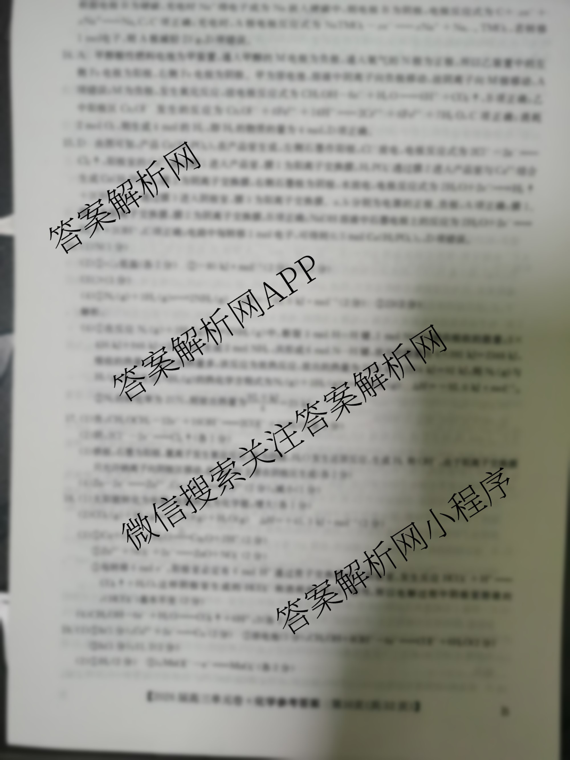 九师联盟2026届高三单元定向检测卷(五)5化学(B)答案