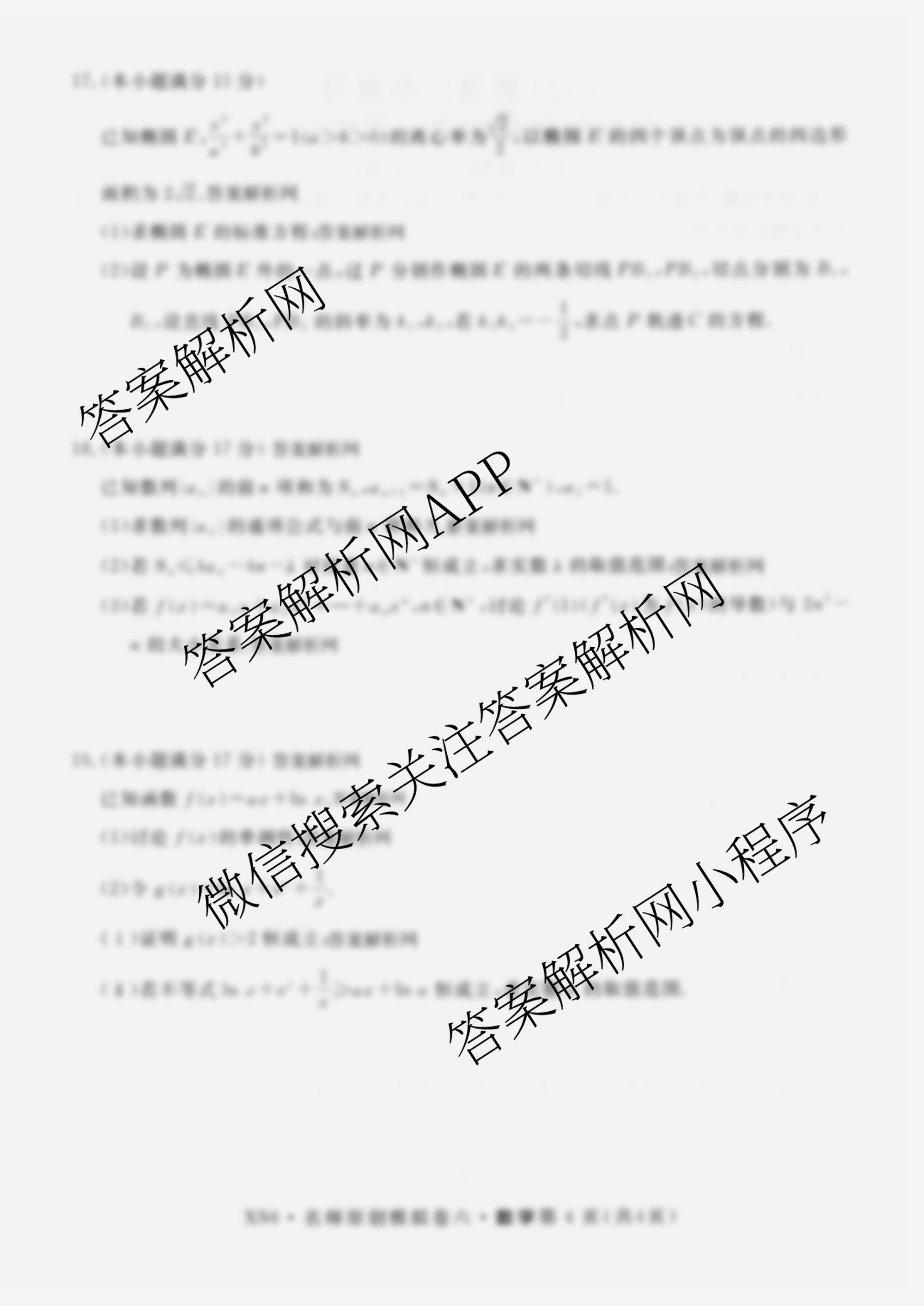 - [高三]2026届总复习名师原创模拟(六)6数学(XS6)答案