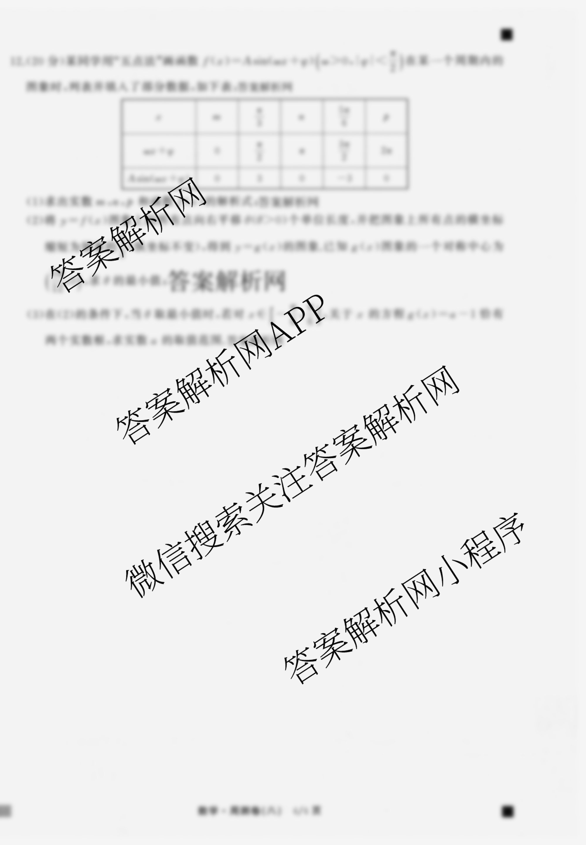 衡中同卷2025-2026学年度高三一轮复习周测卷(八)8数学(A)试题