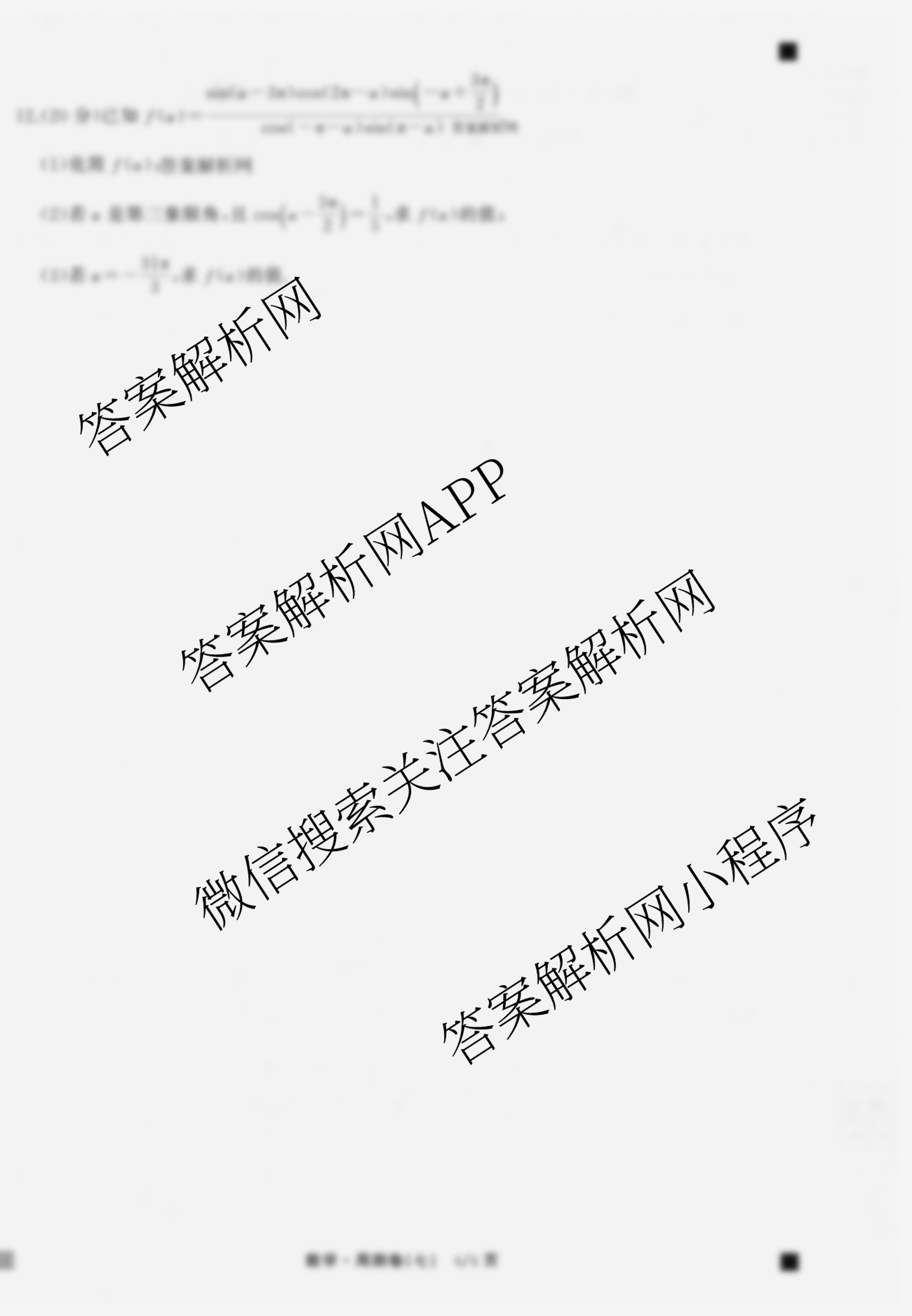 衡中同卷2025-2026学年度高三一轮复习周测卷(七)7数学(A)试题