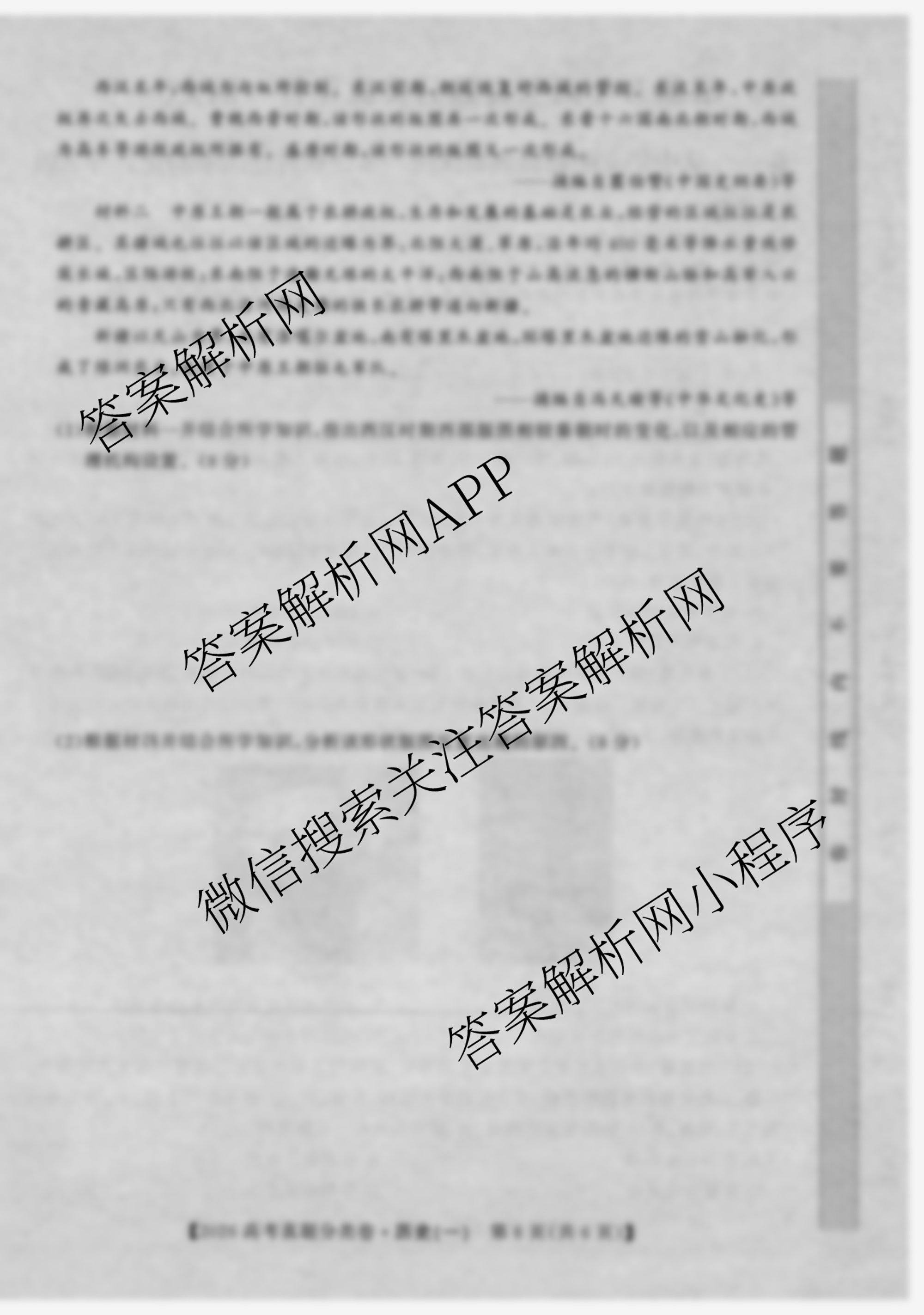 - 2026(最新五年高考真题分类优化卷)·历史(一)1答案