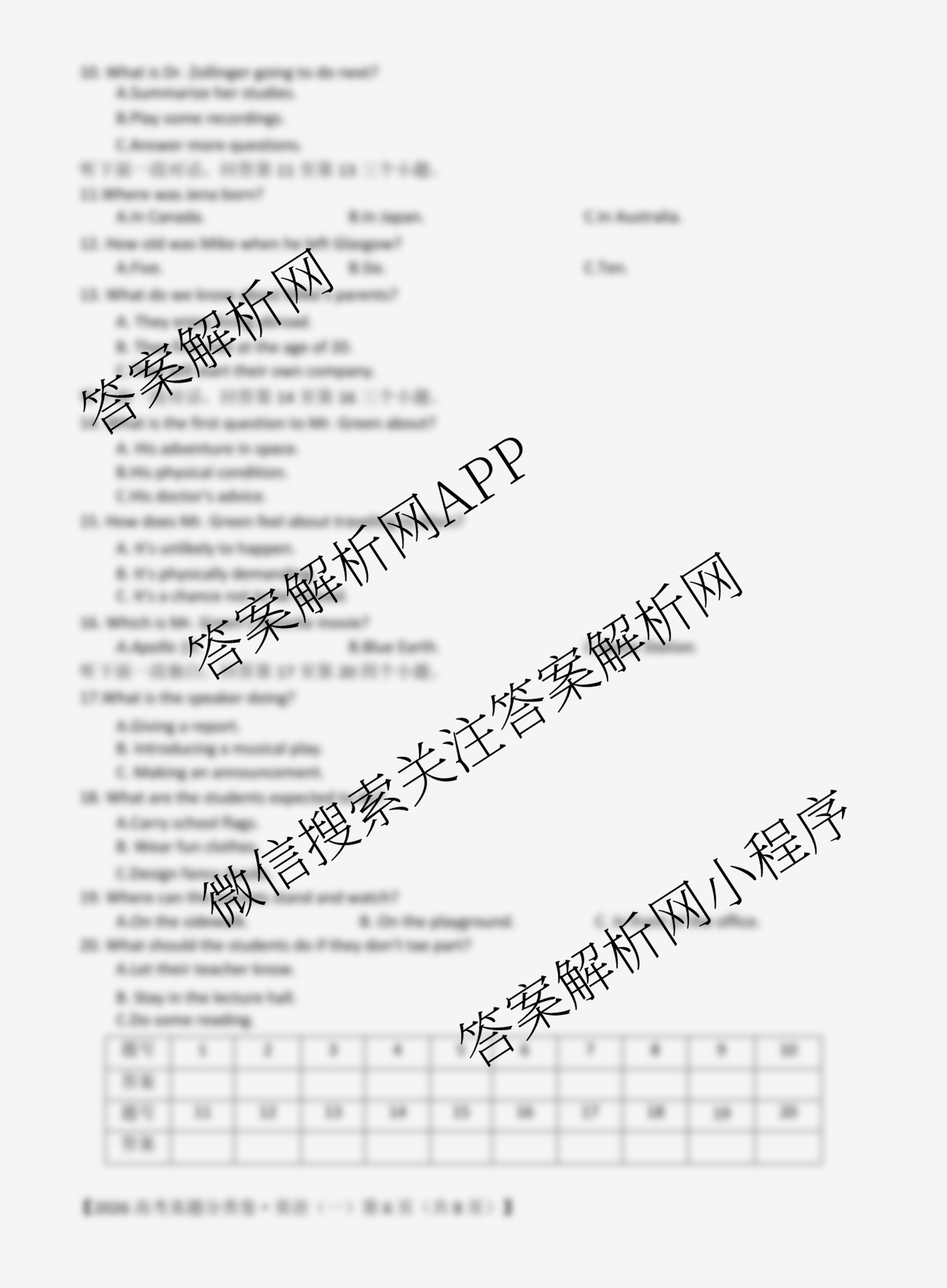 - (高三)2026最新五年高考真题分类优化卷·英语(一)1答案