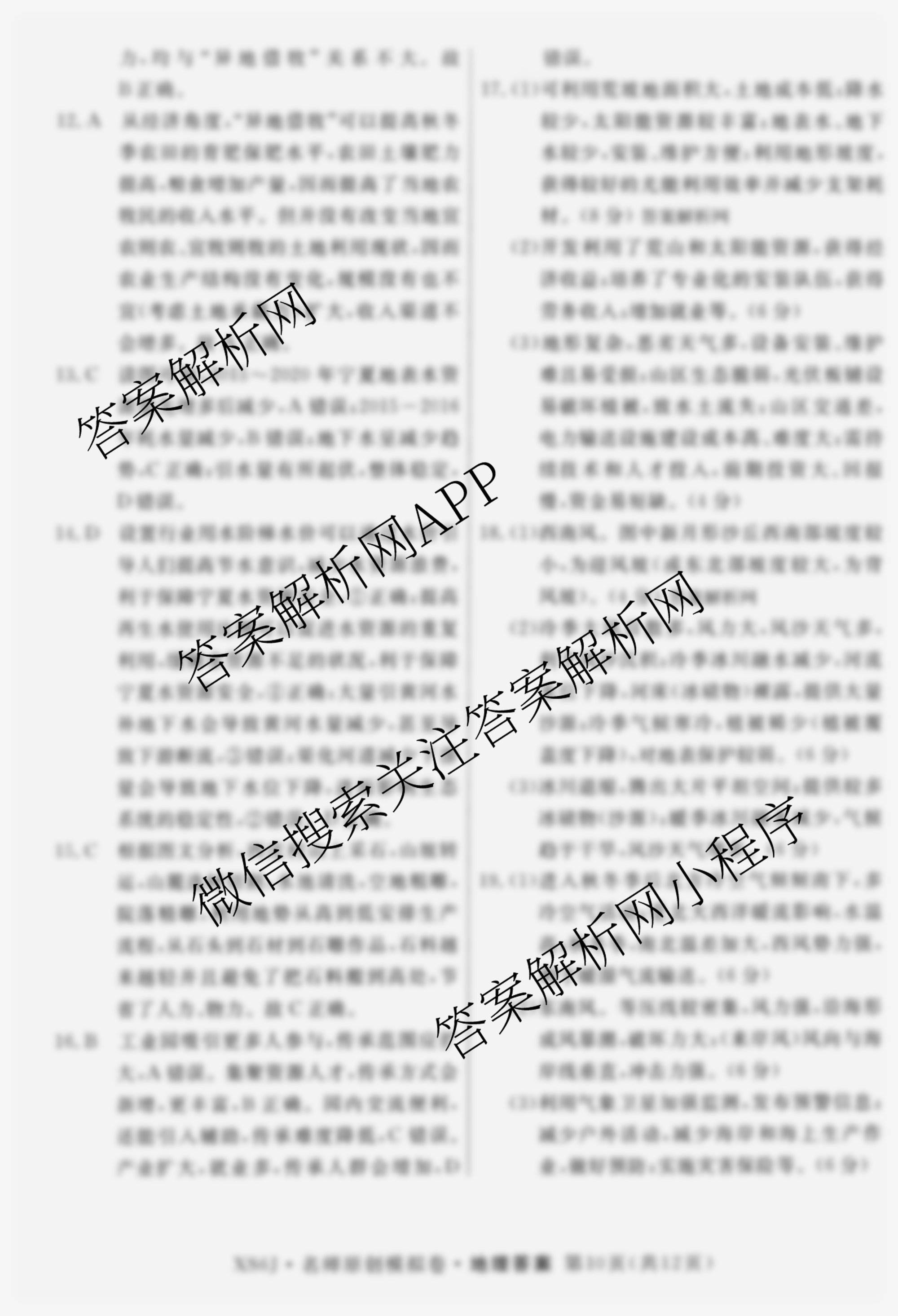 - 2026届高三总复习名师原创模拟(五)5地理(XS6J)答案
