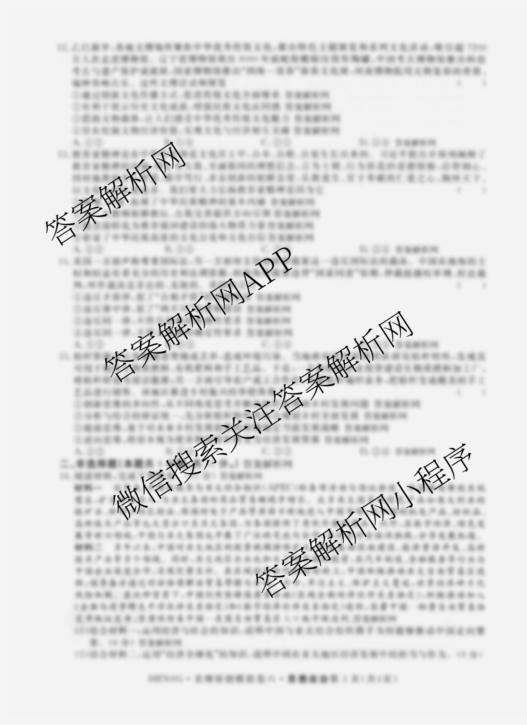 - [高三]2026届(总复习名师原创模拟)(六)6政治(XS6)答案