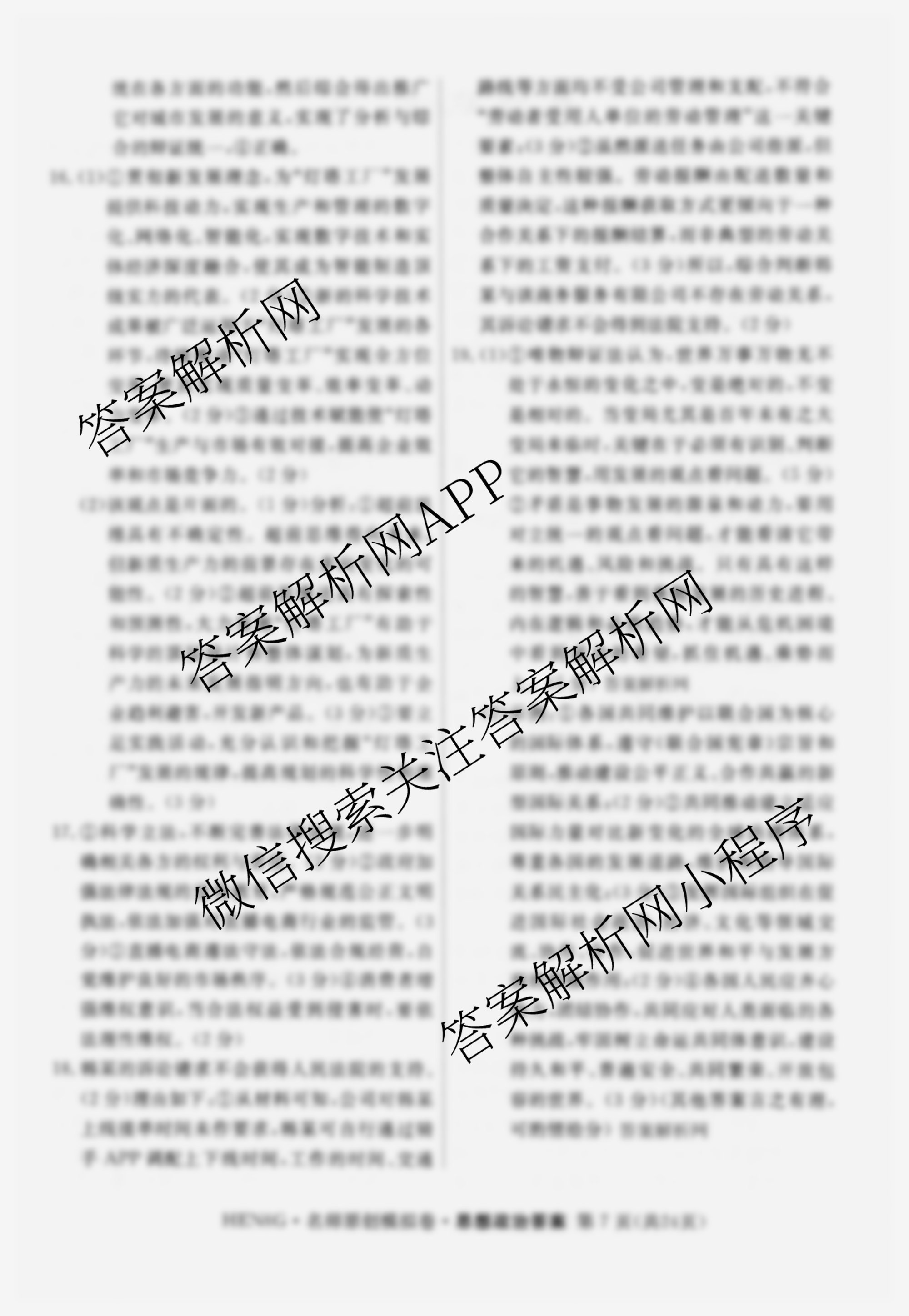 - 2026届(高三)总复习·名师原创模拟(二)2政治(HEN6G)答案