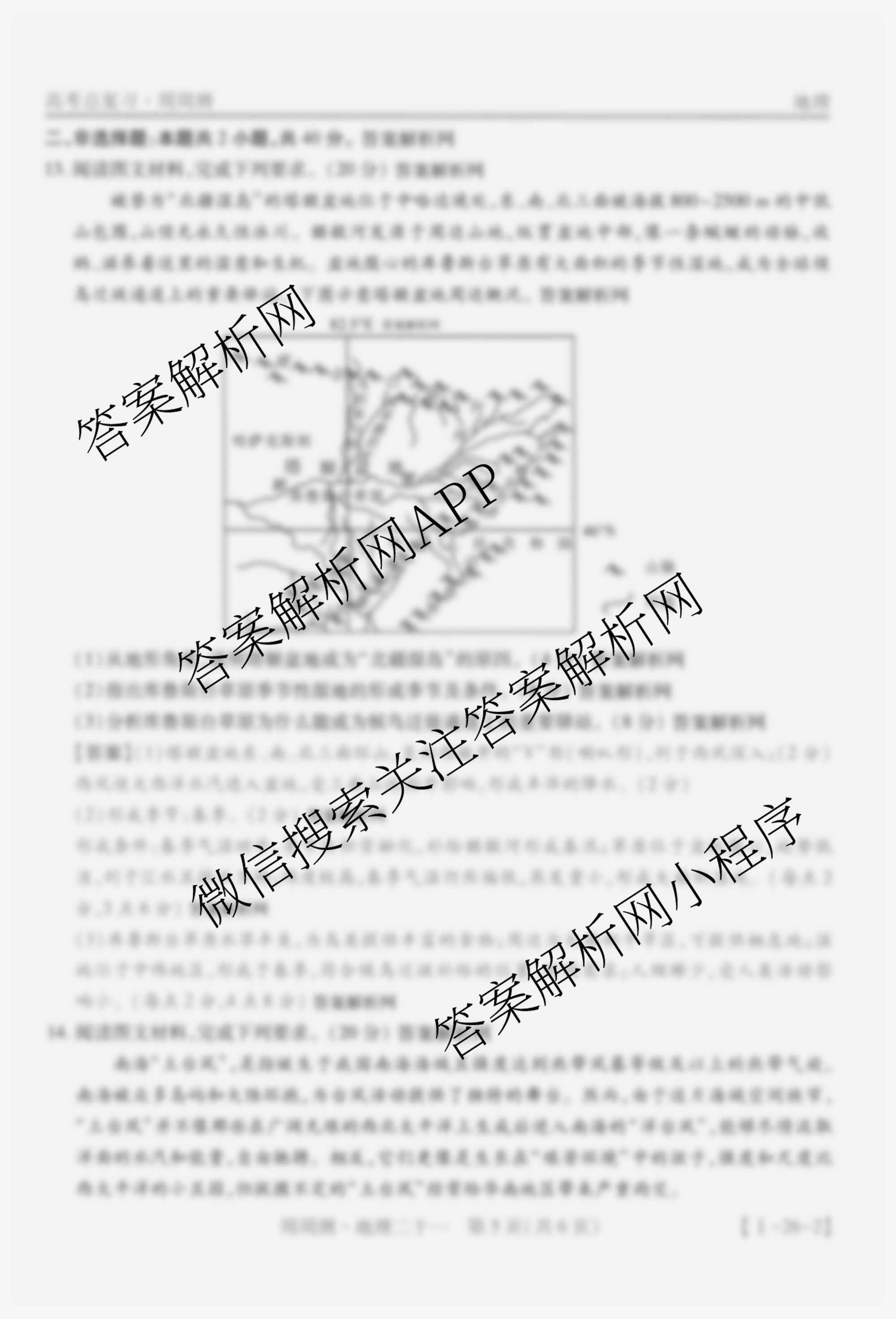 2026届智慧上进高考总复习必刷卷周周测(二十一)21地理(I)答案