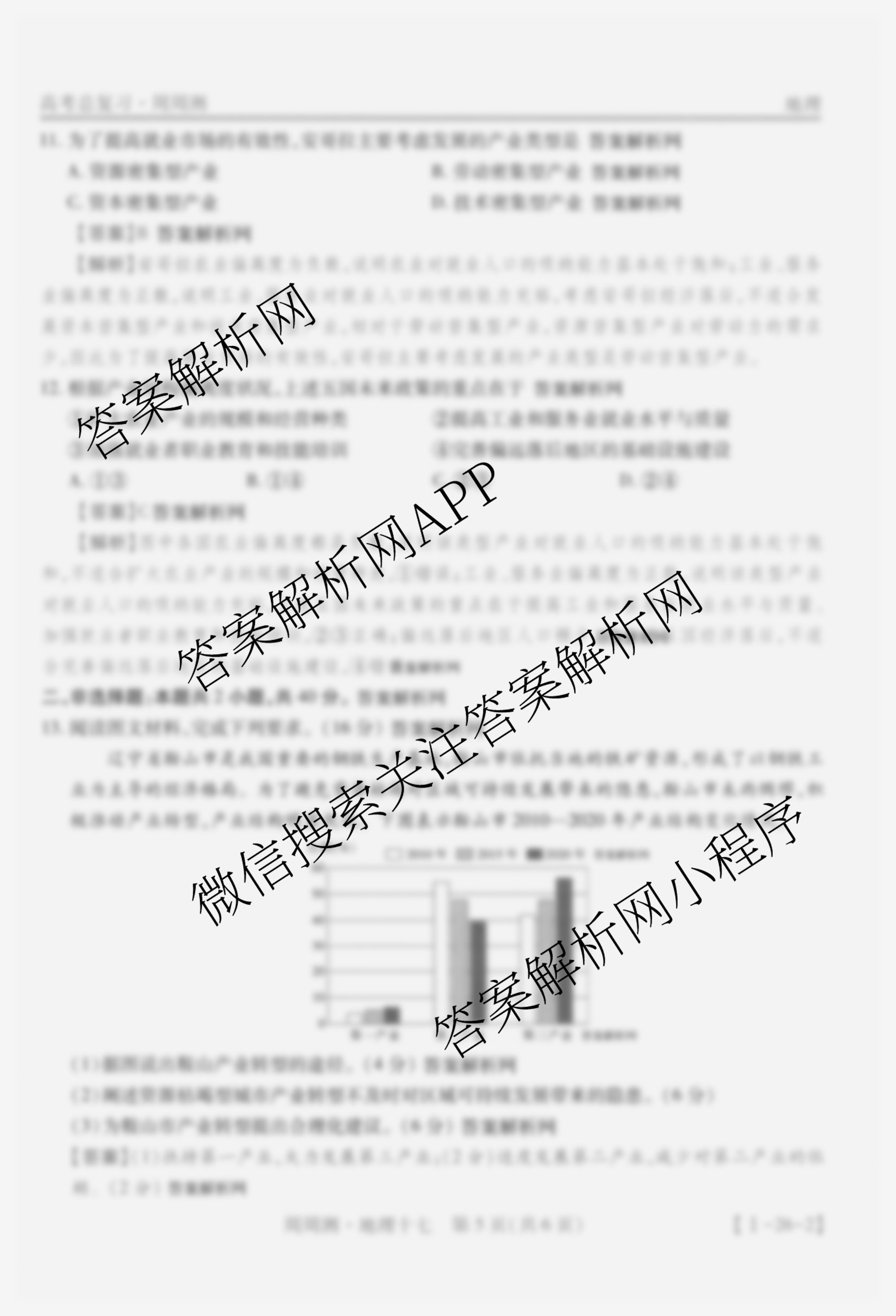 2026届智慧上进高考总复习必刷卷周周测(十七)17地理(I)答案
