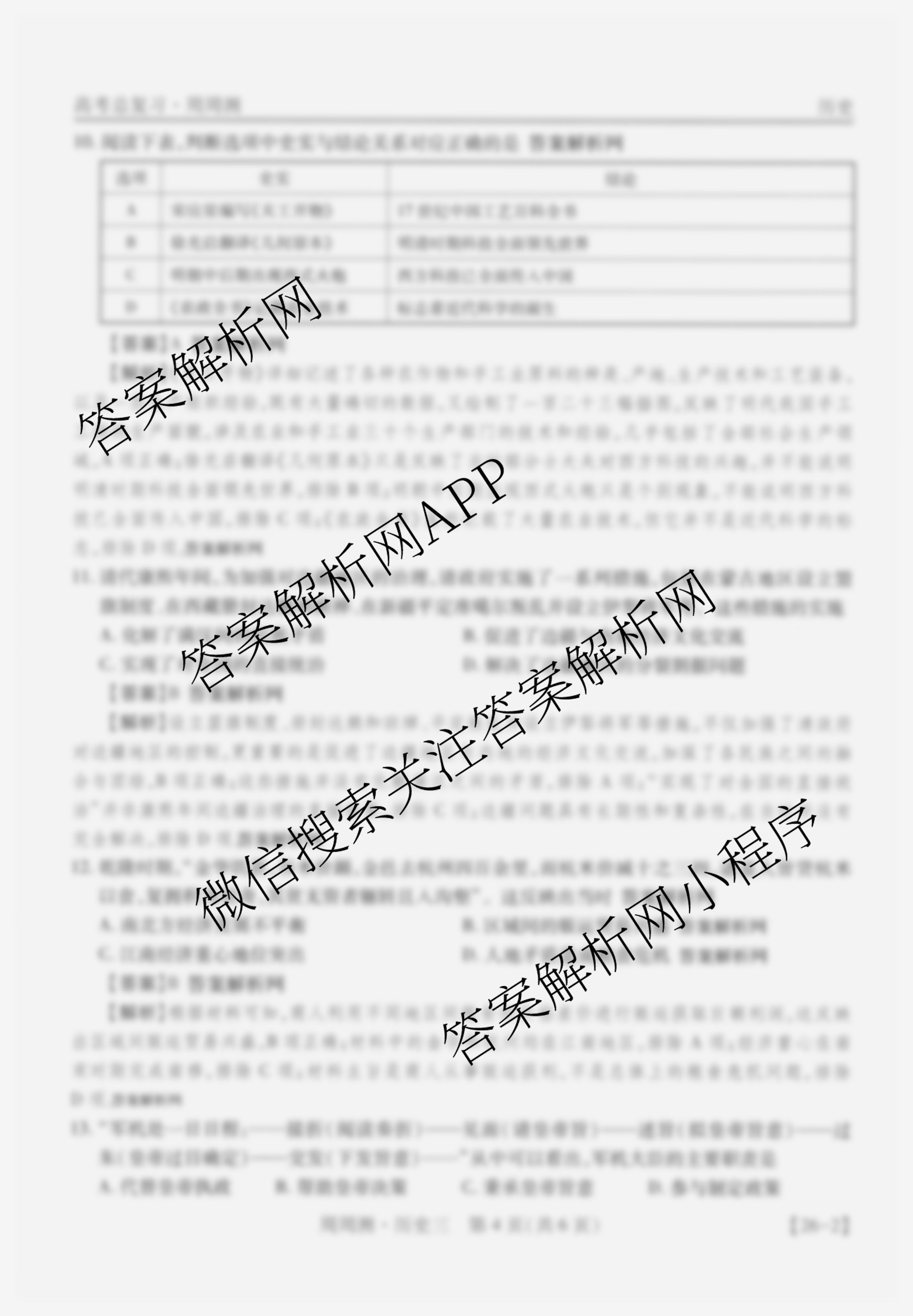 2026届智慧上进高考总复习必刷卷周周测(三)3历史答案