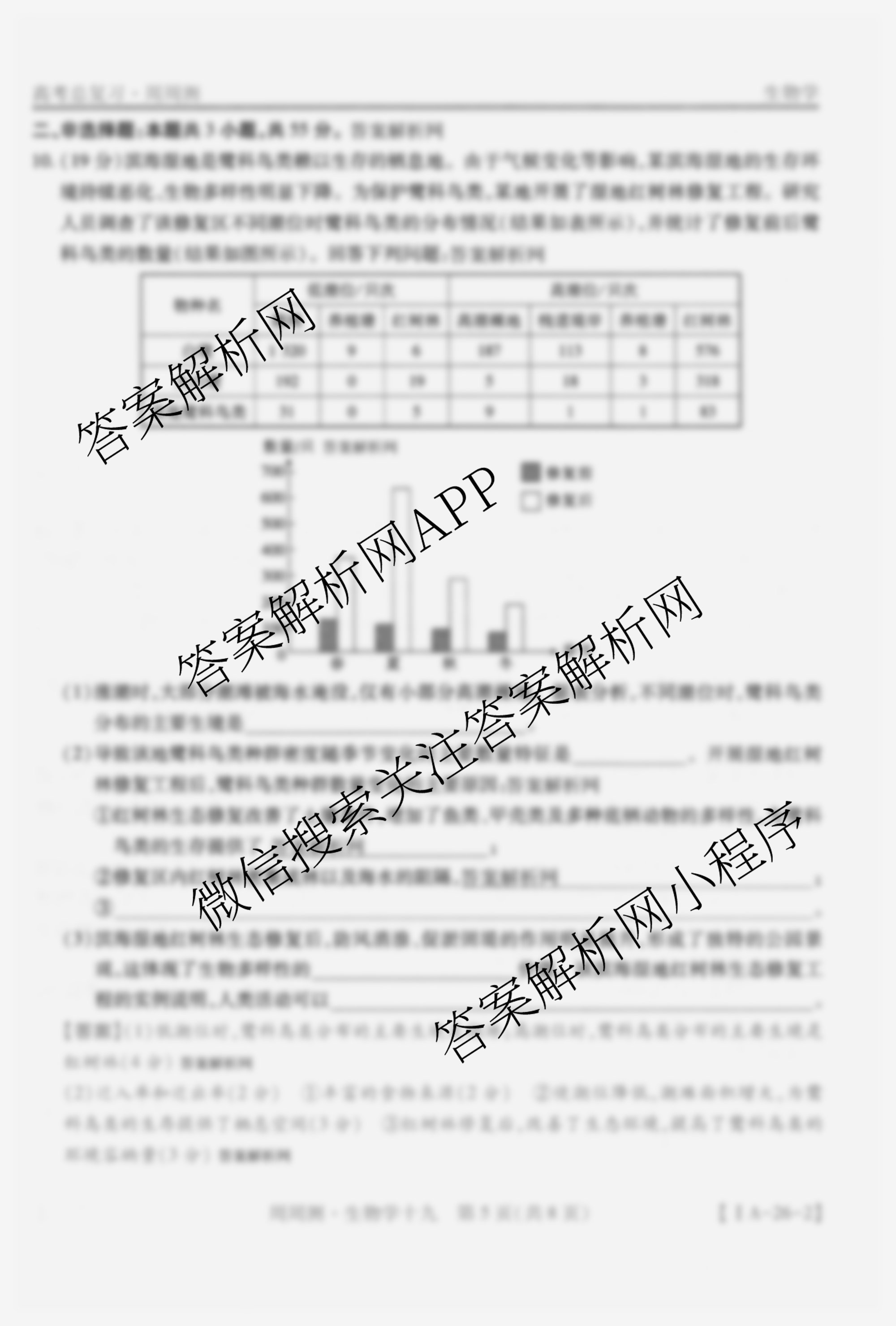 2026届智慧上进高考总复习必刷卷周周测(十九)19生物(IA)答案