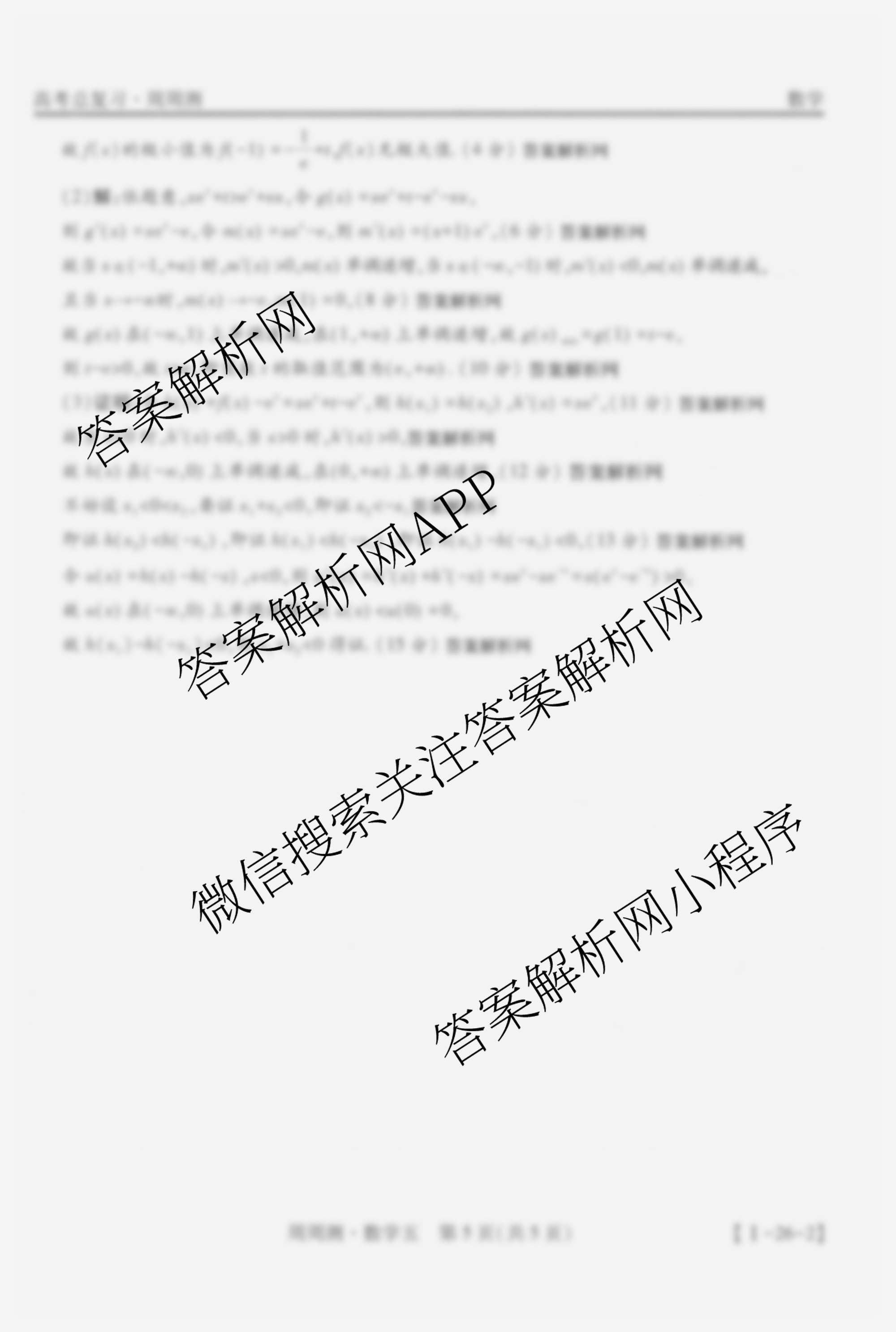 2026届智慧上进高考总复习必刷卷周周测(五)5数学(I)答案