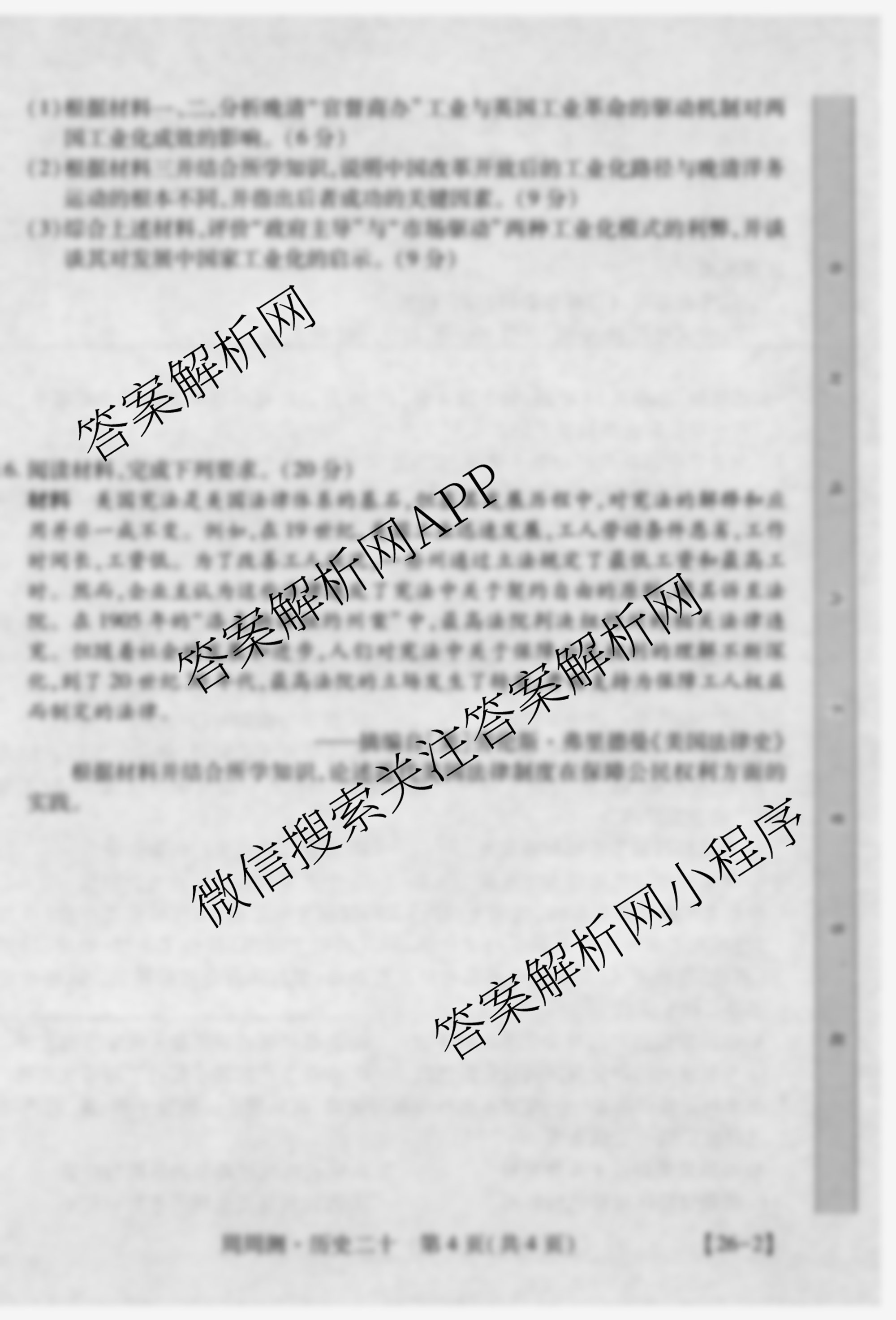 2026届智慧上进高考总复习必刷卷周周测(二十)20历史试题
