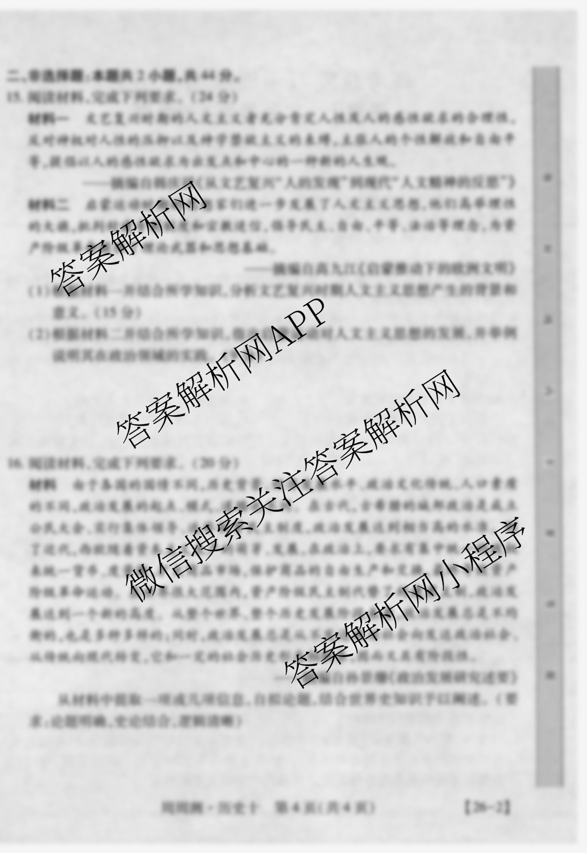2026届智慧上进高考总复习必刷卷周周测(十)10历史试题