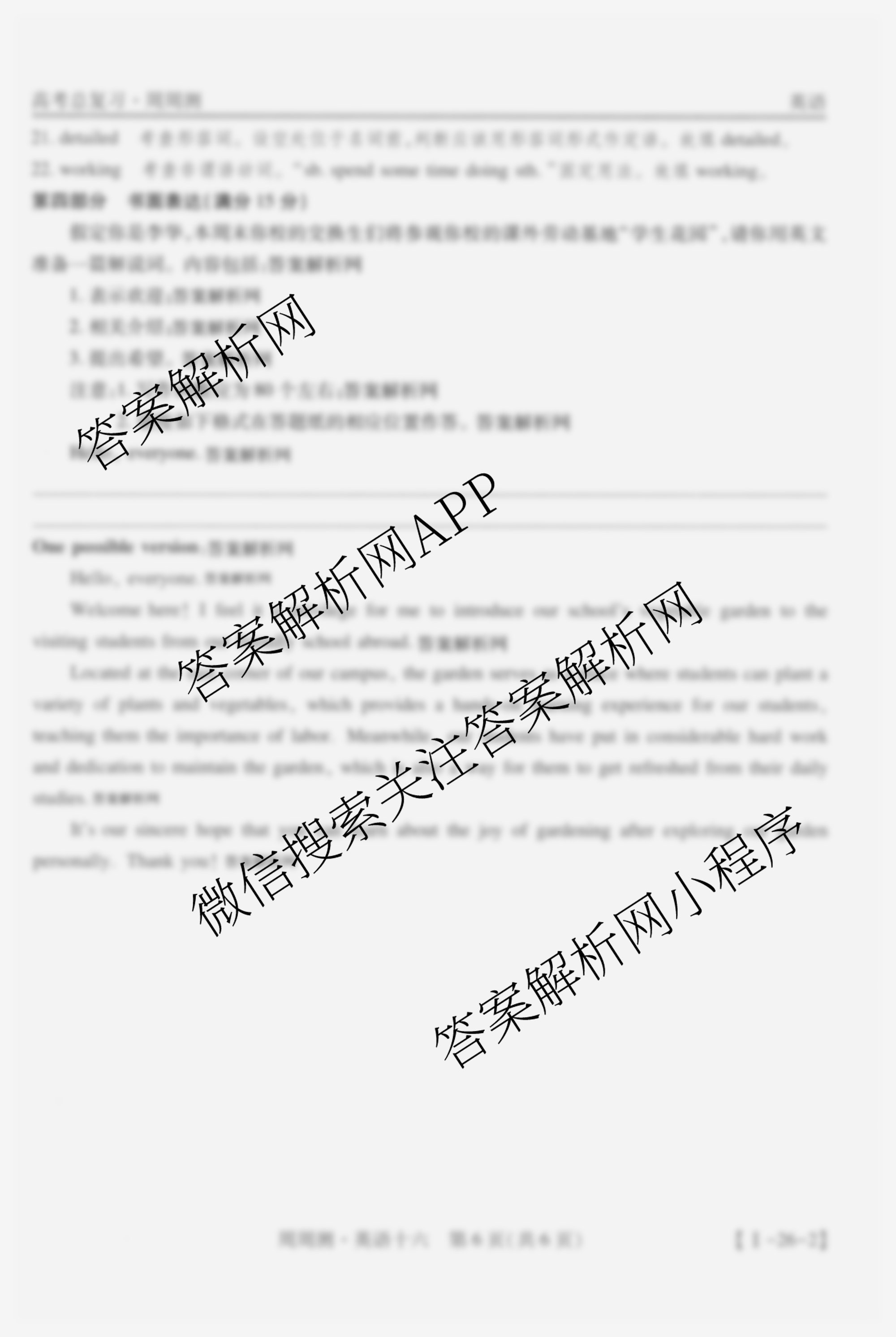 2026届智慧上进高考总复习必刷卷周周测(十六)16英语(I)答案